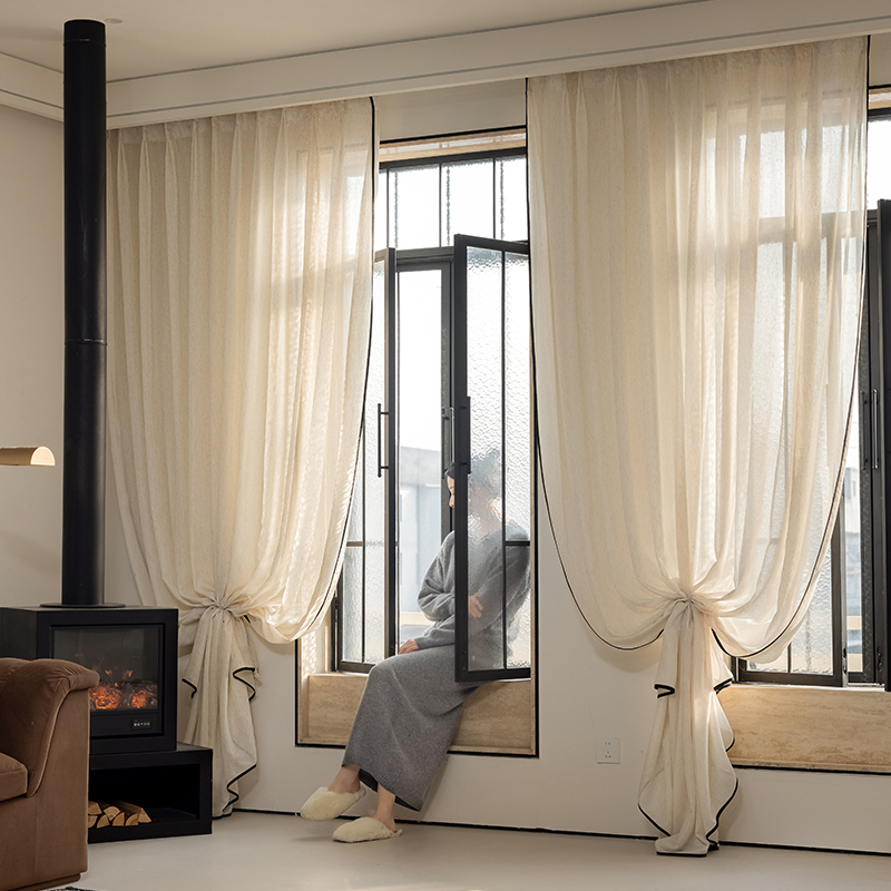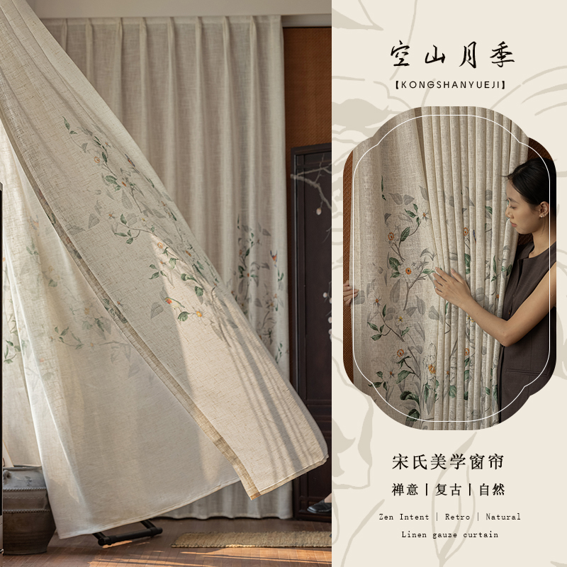 린넨 거즈 커튼, 빛 차단 린넨 거즈, 다실, 일본식 면 및 린넨 중세 스타일 창 스크린, 발코니 중국 스타일