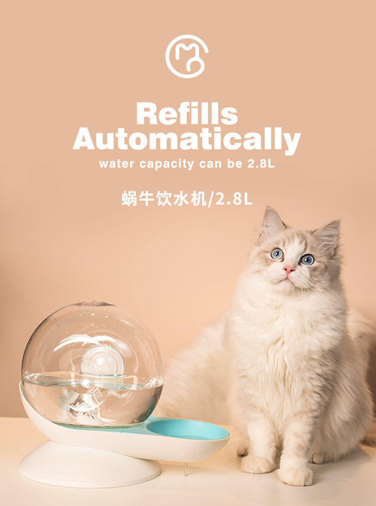 달팽이 고양이 물 디스펜서, 이동식 플러그인 없는 애완견 식수 자동 급수기, 물 튀김 방지 물통