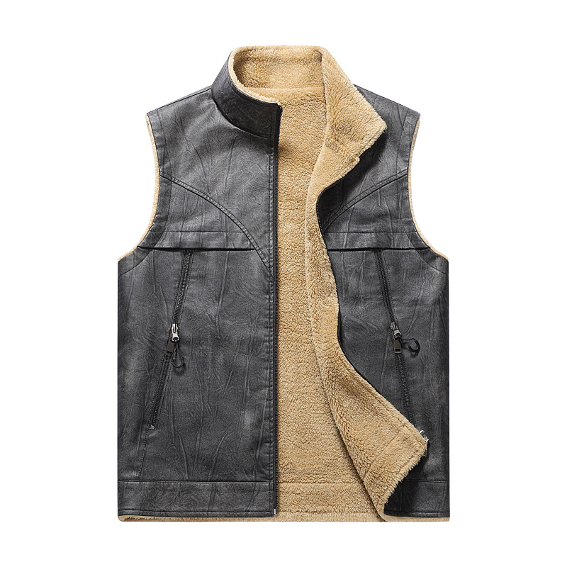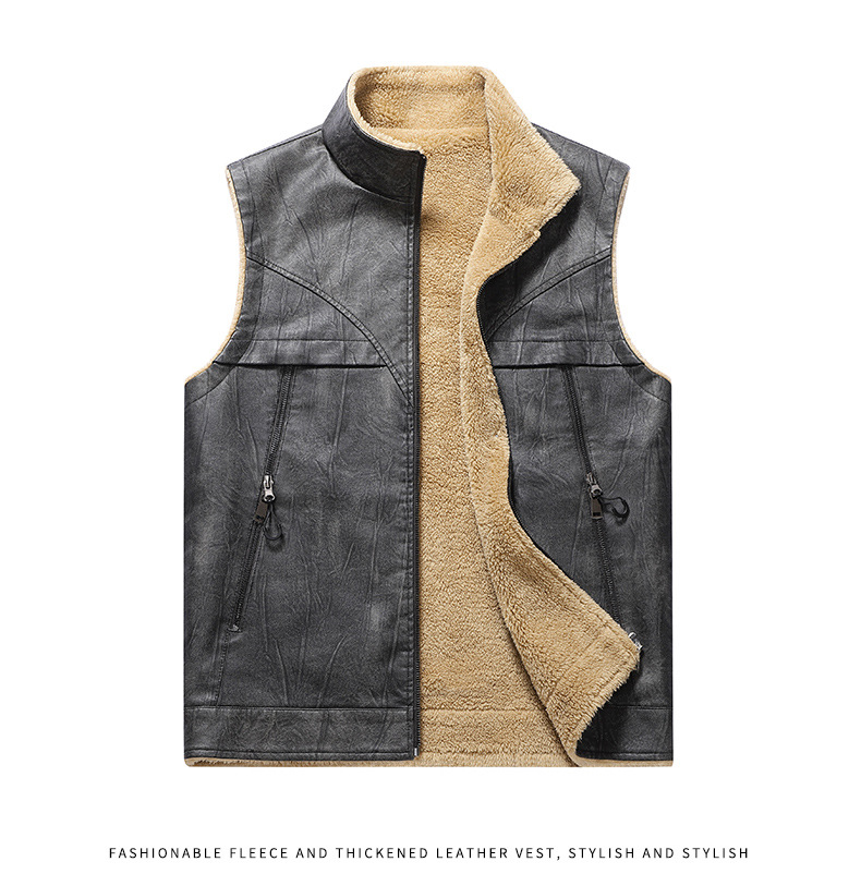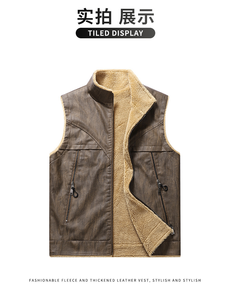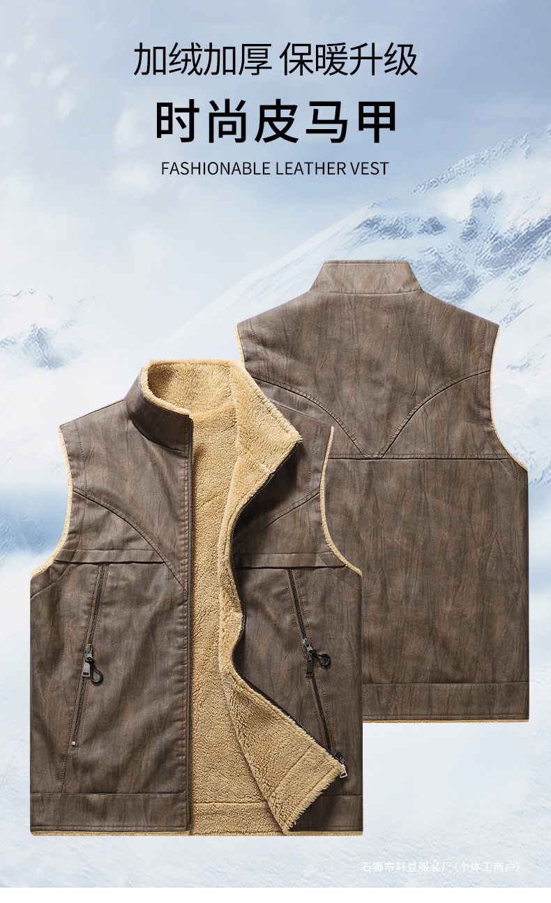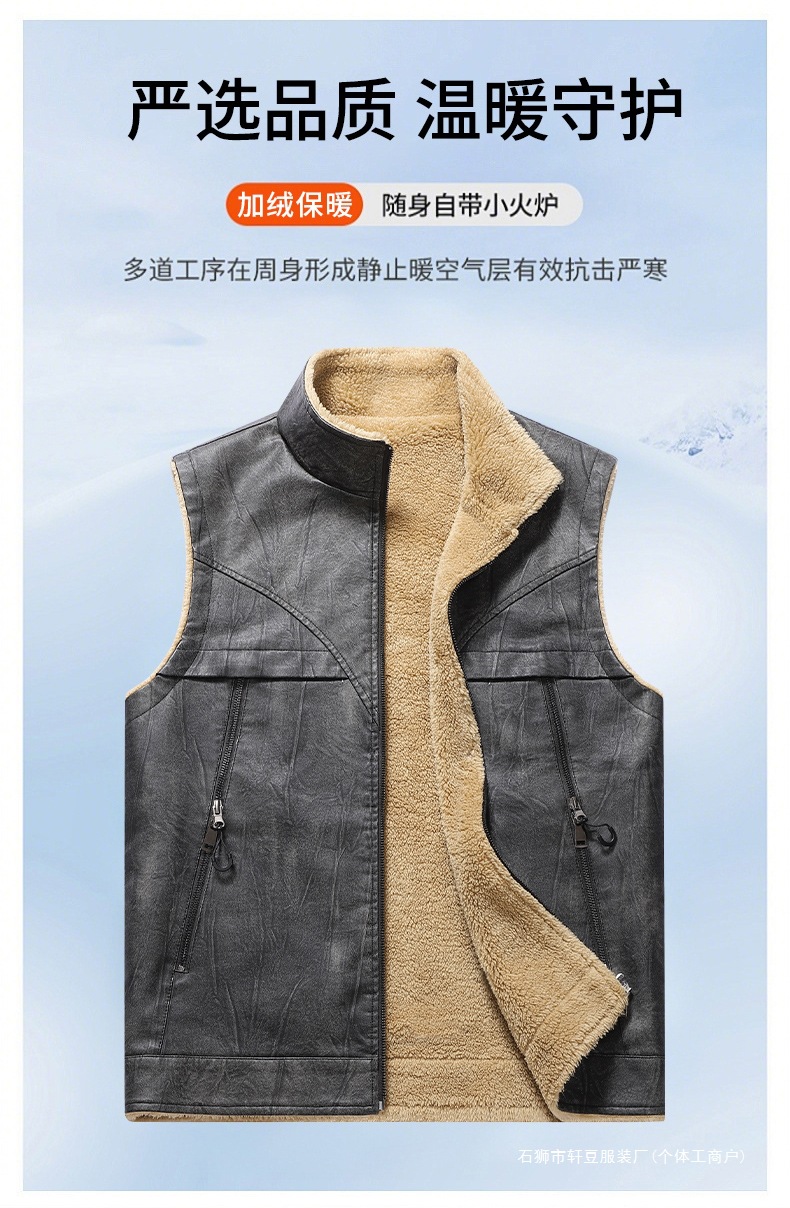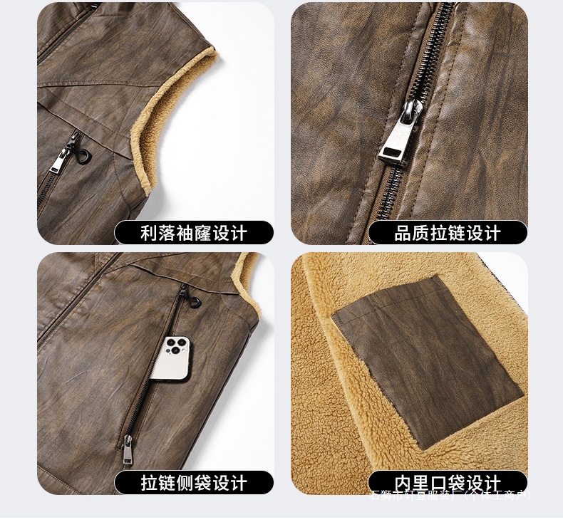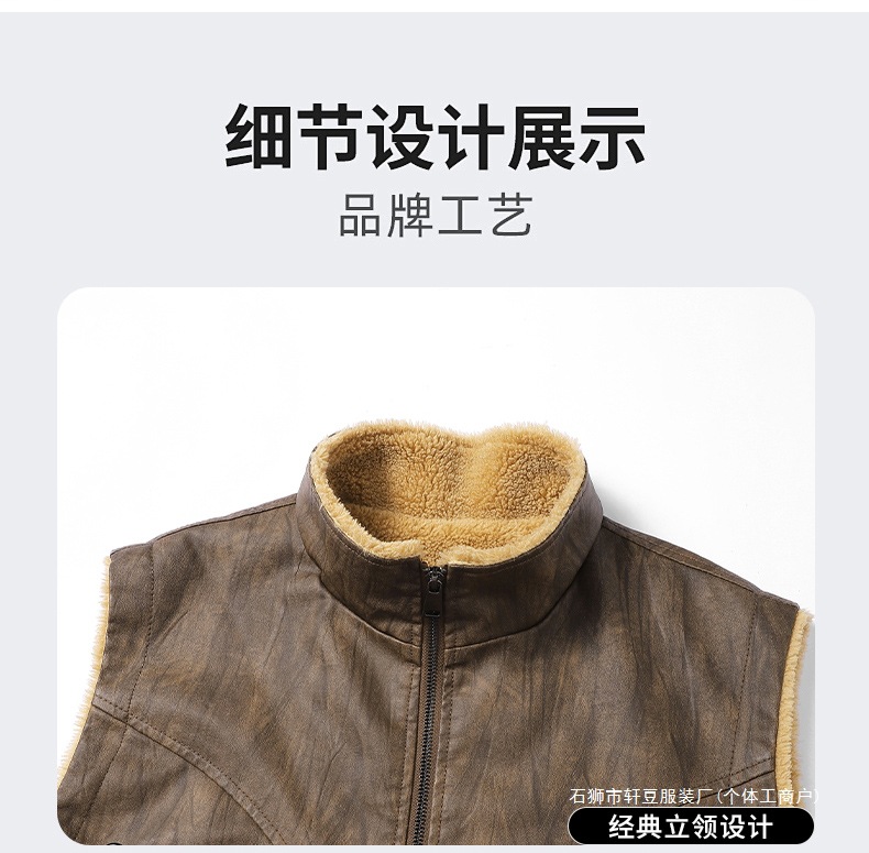 벨벳 안감 디자인으로 따뜻한 가을 겨울 복고풍을 유지하는 새로운 남성용 가죽 조끼 재킷을 도매로 판매합니다.스토어 가기