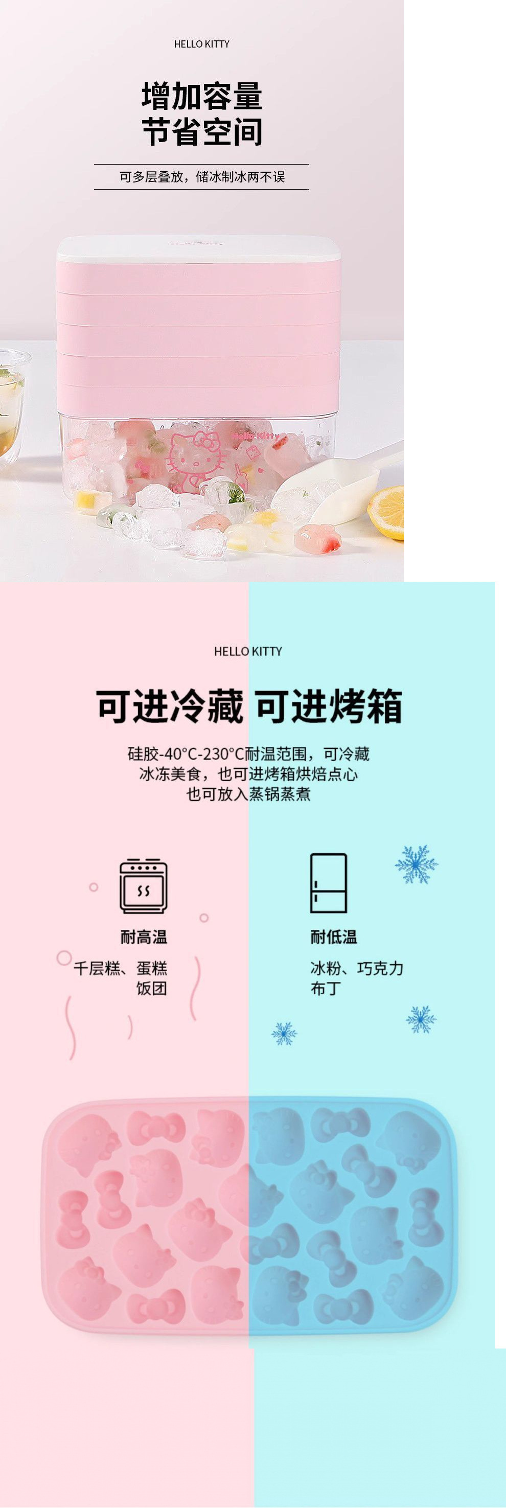 실리콘 아이스 트레이 몰드 프레스 아이스 큐브 얼음 저장 상자 Sanrio
