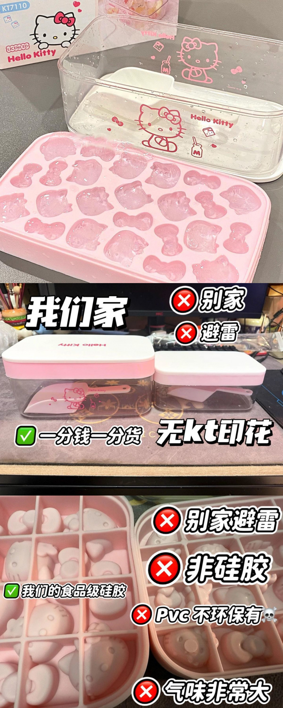 실리콘 아이스 트레이 몰드 프레스 아이스 큐브 얼음 저장 상자 Sanrio스토어 가기