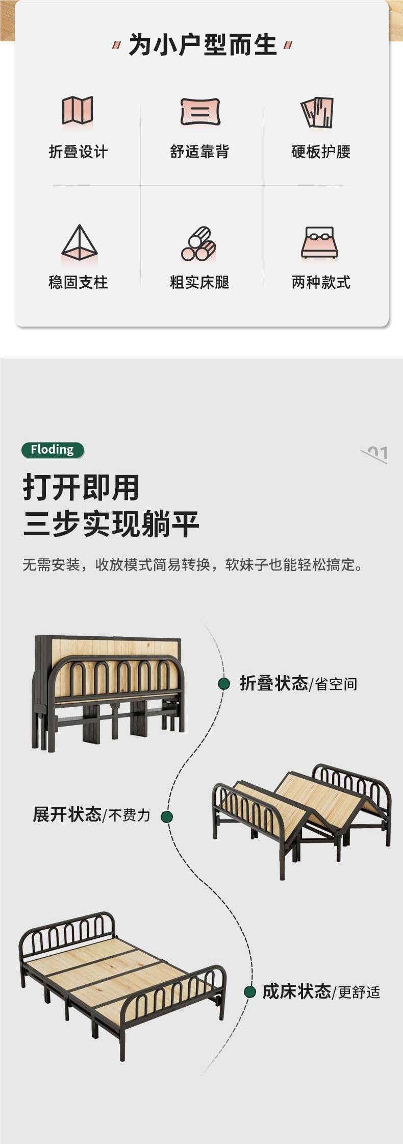 접이식 침대 가정용 간단한 단단한 나무 싱글 침대 임대실 접이식 수납 더블 침대 공부방 낮잠용 작은 침대스토어 가기