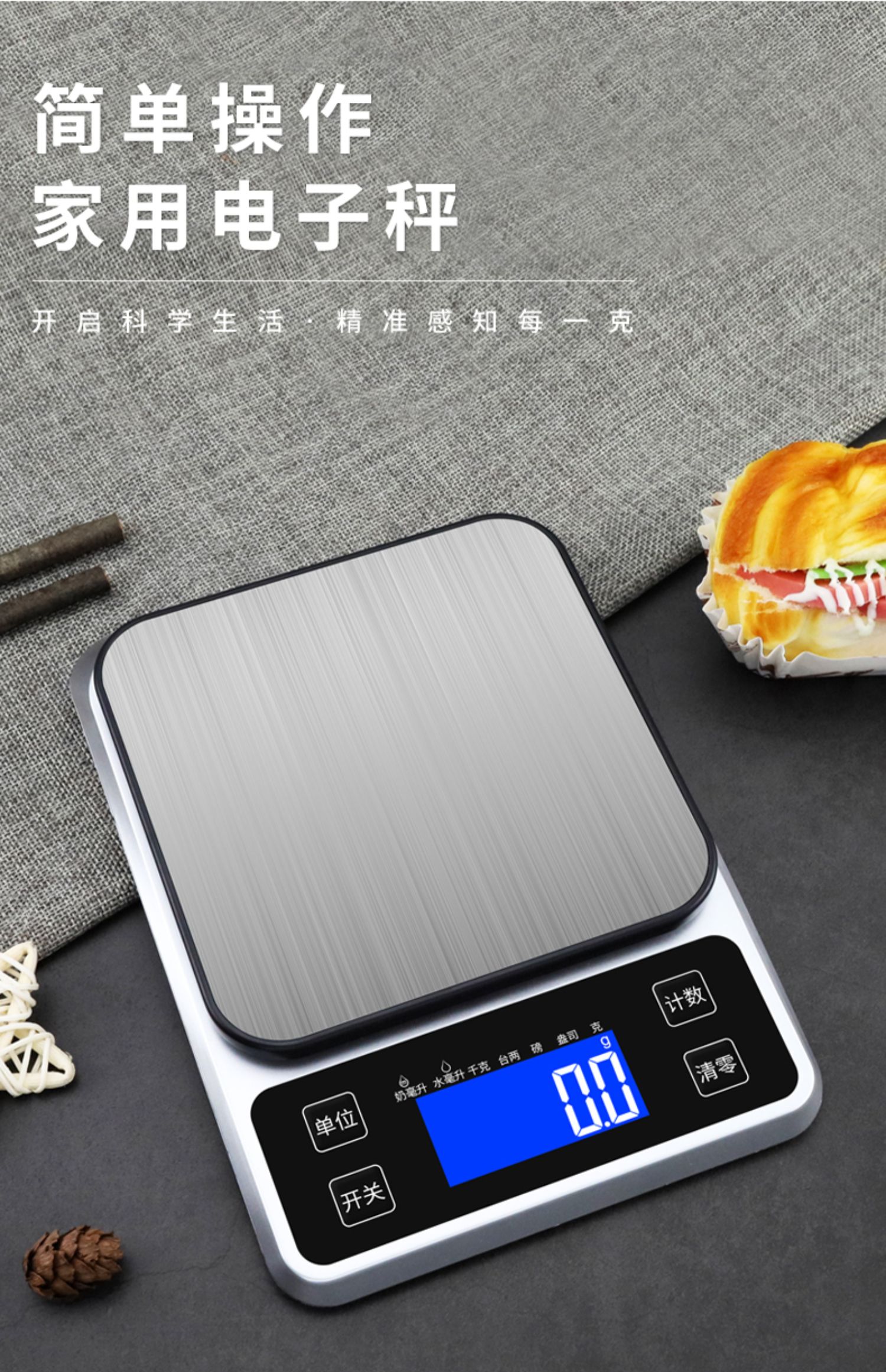 • 〔✪✪✪✪〕〔✪✪✪✪〕〔✪✪✪✪〕不锈钢电池款银色5kg/1g送托盘+量杯〔✪✪✪✪〕〔✪✪✪✪〕〔✪✪✪✪〕