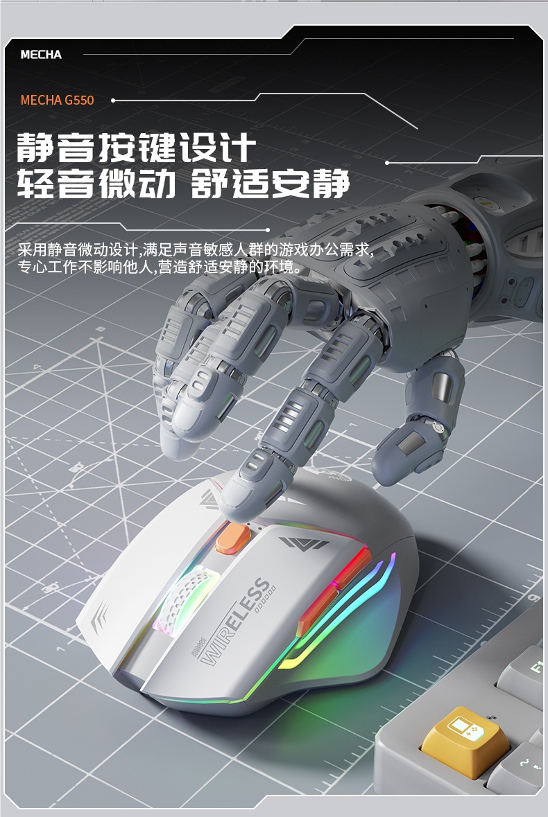 Mecha Mouse 무선 Bluetooth 무음 기계식 e-스포츠 게임 충전식 데스크탑 노트북 범용 듀얼 모드스토어 가기