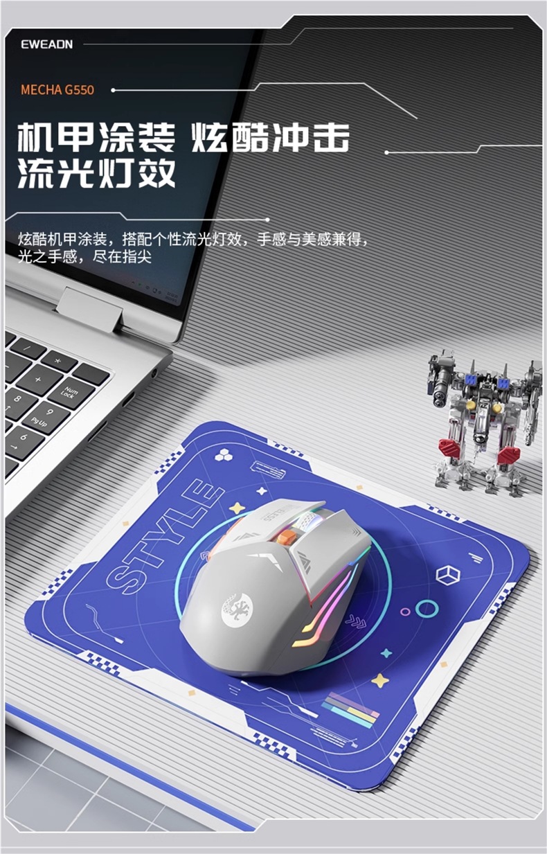 • "메카 블루 ""2.4G 무선 단일 모드"" 충전식 버전* 게임 칩/무음 버튼/3단 DPI+ 메카 마우스 패드 - 공식 표준"