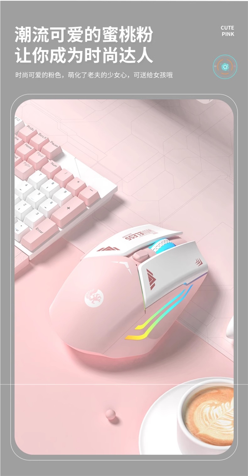 • "사쿠라 핑크 ""2.4G 무선 + Bluetooth 듀얼 모드"" 충전식 버전 * 게임 칩/무음 버튼/3단 DPI-공식 표준"