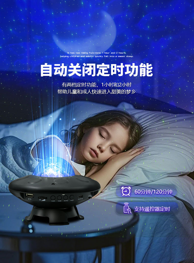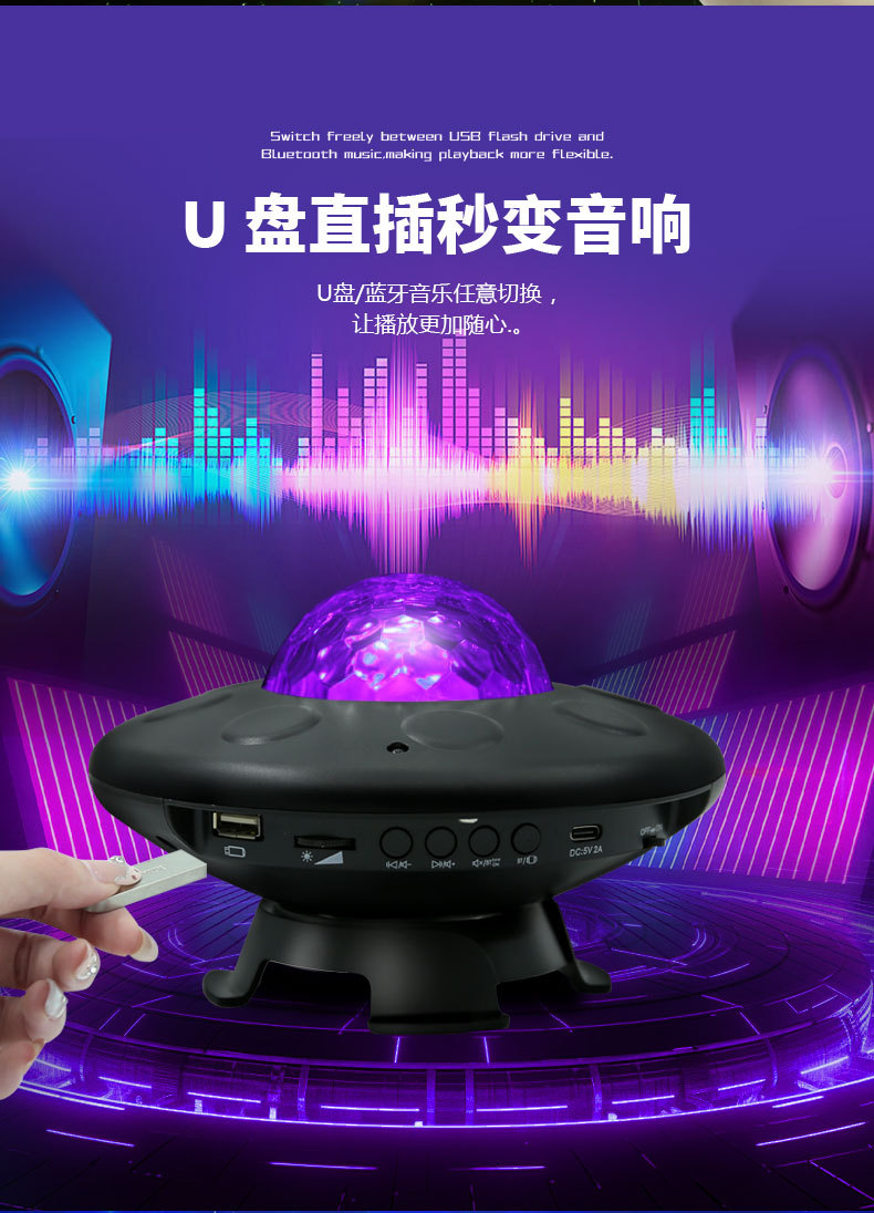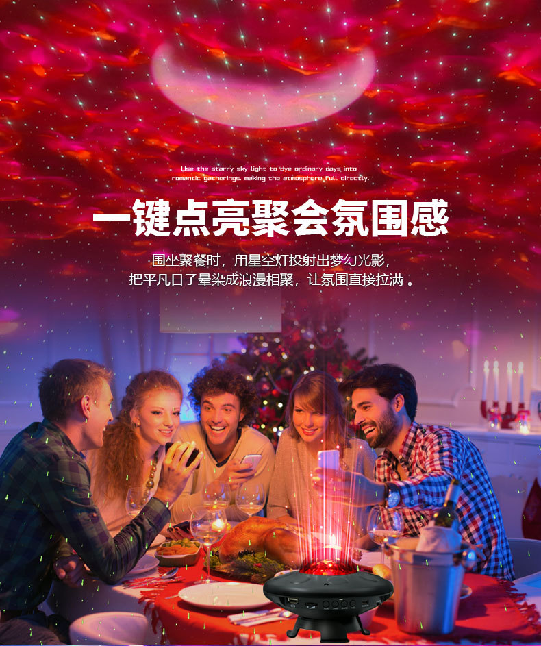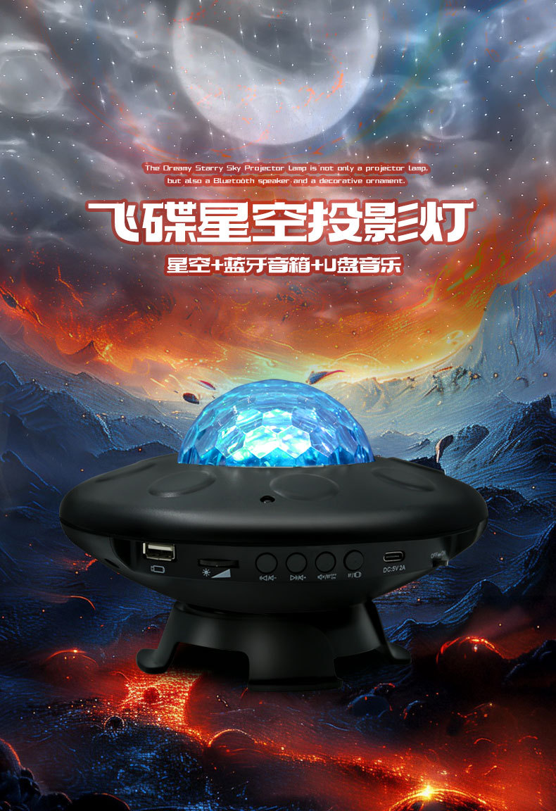 새로운 UFO 별이 빛나는 하늘 프로젝션 USB 블루투스 분위기 램프 음성 활성화 바다 별이 빛나는 밤 빛 레이저 프로젝션 램프