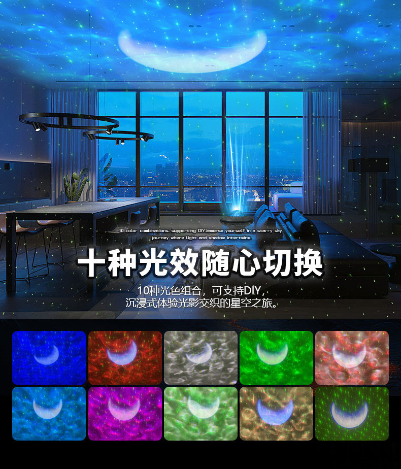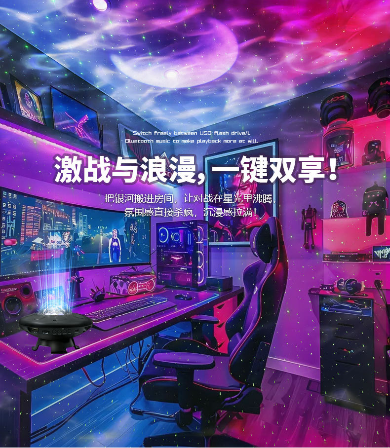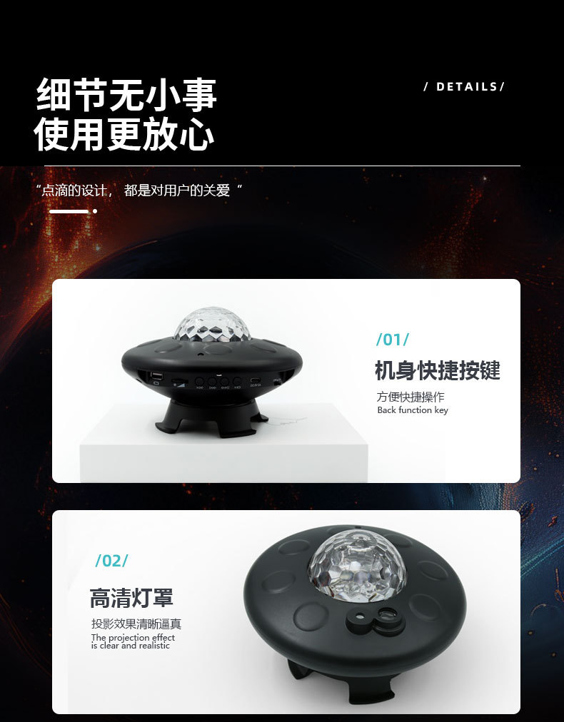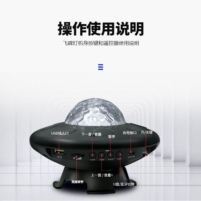 새로운 UFO 별이 빛나는 하늘 프로젝션 USB 블루투스 분위기 램프 음성 활성화 바다 별이 빛나는 밤 빛 레이저 프로젝션 램프