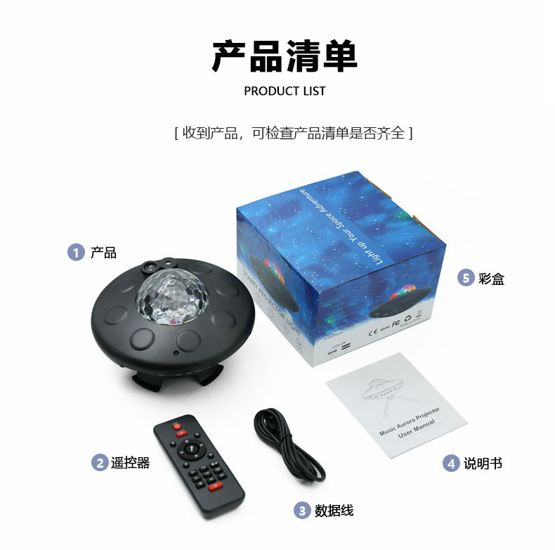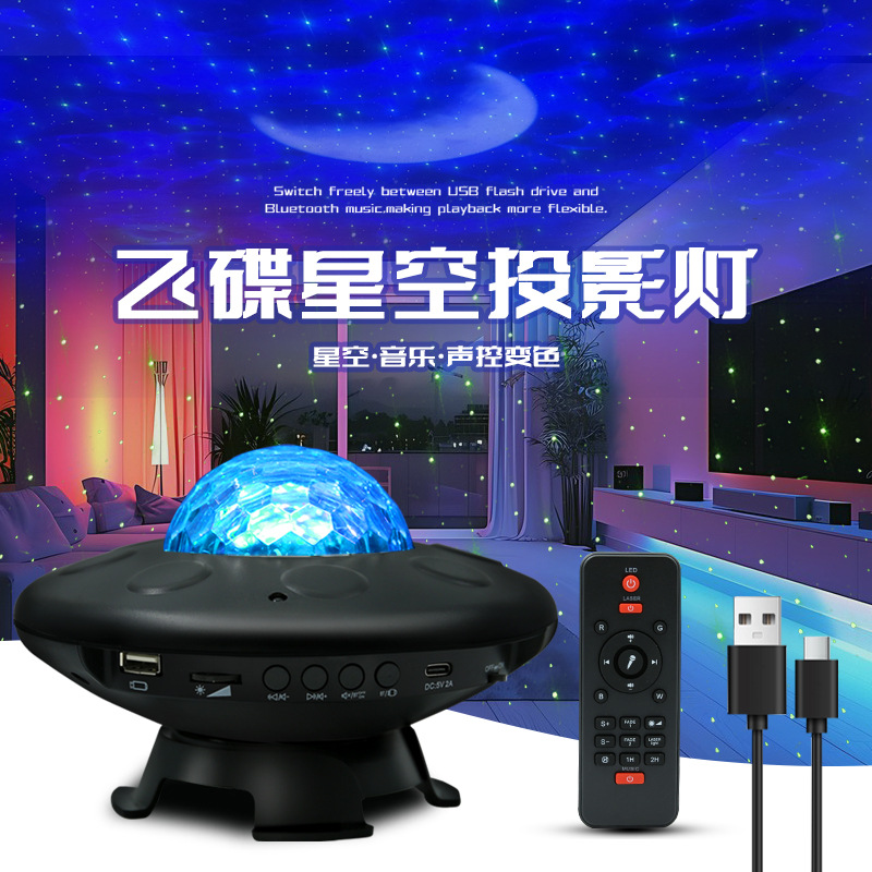 새로운 UFO 별이 빛나는 하늘 프로젝션 USB 블루투스 분위기 램프 음성 활성화 바다 별이 빛나는 밤 빛 레이저 프로젝션 램프스토어 가기