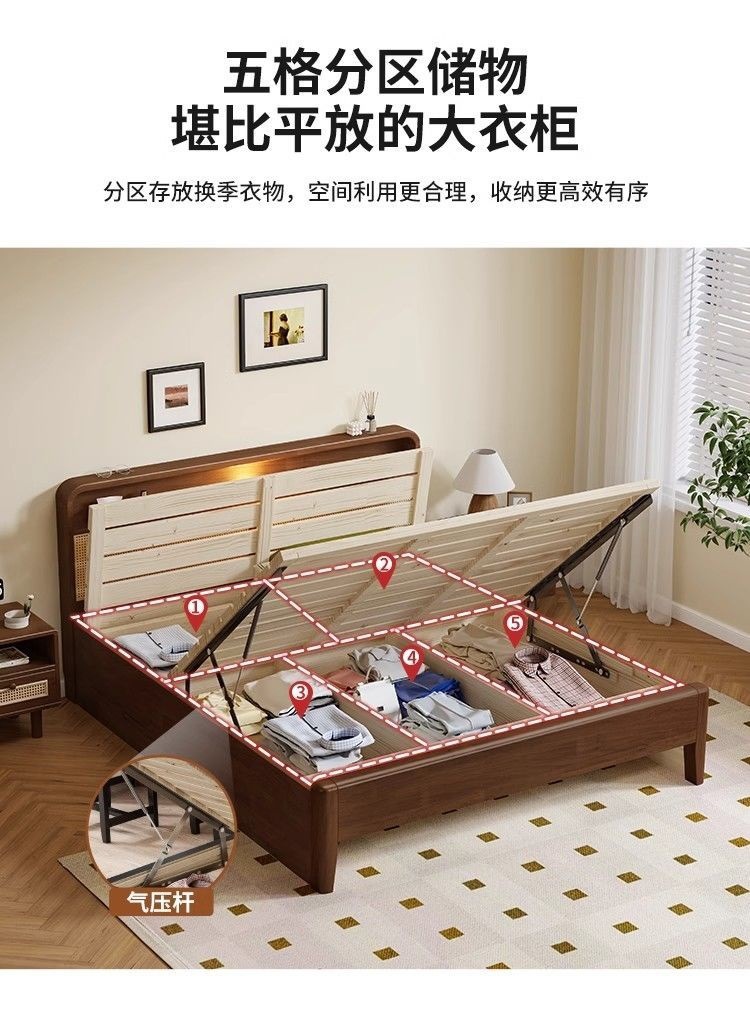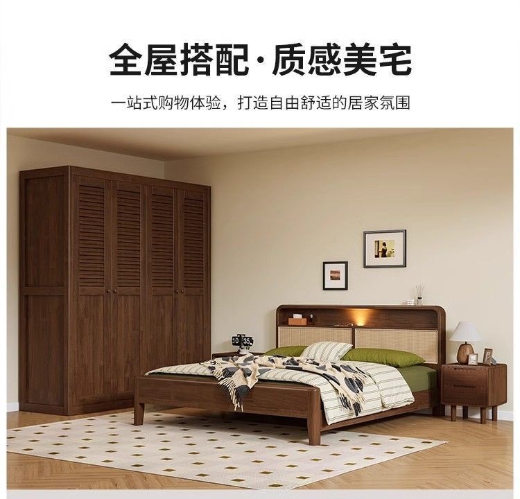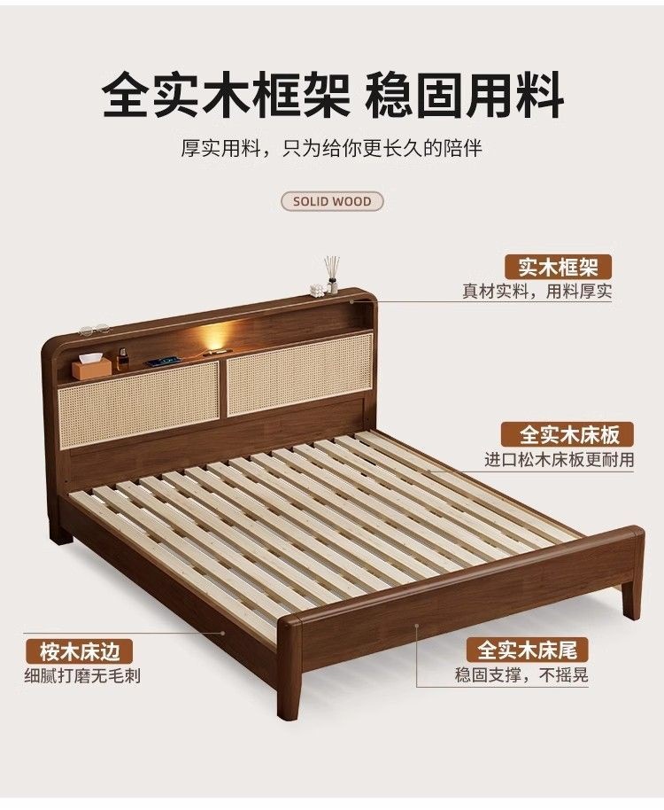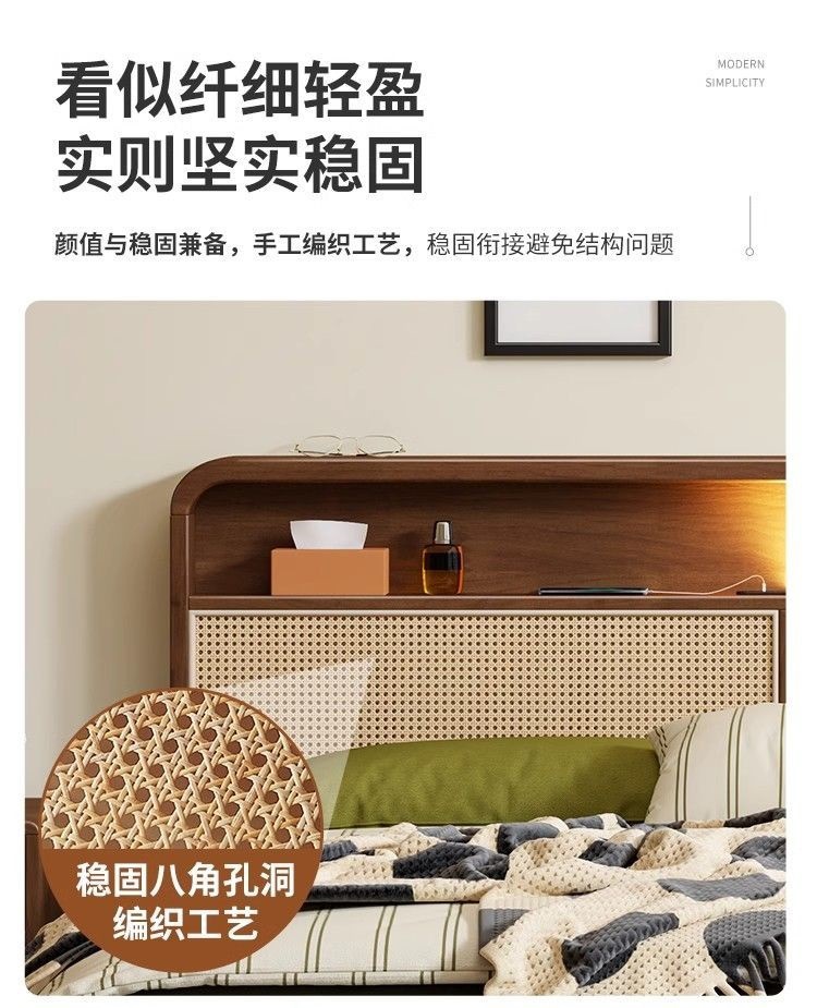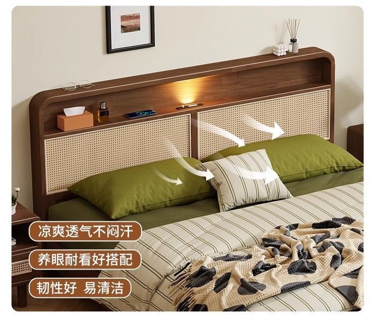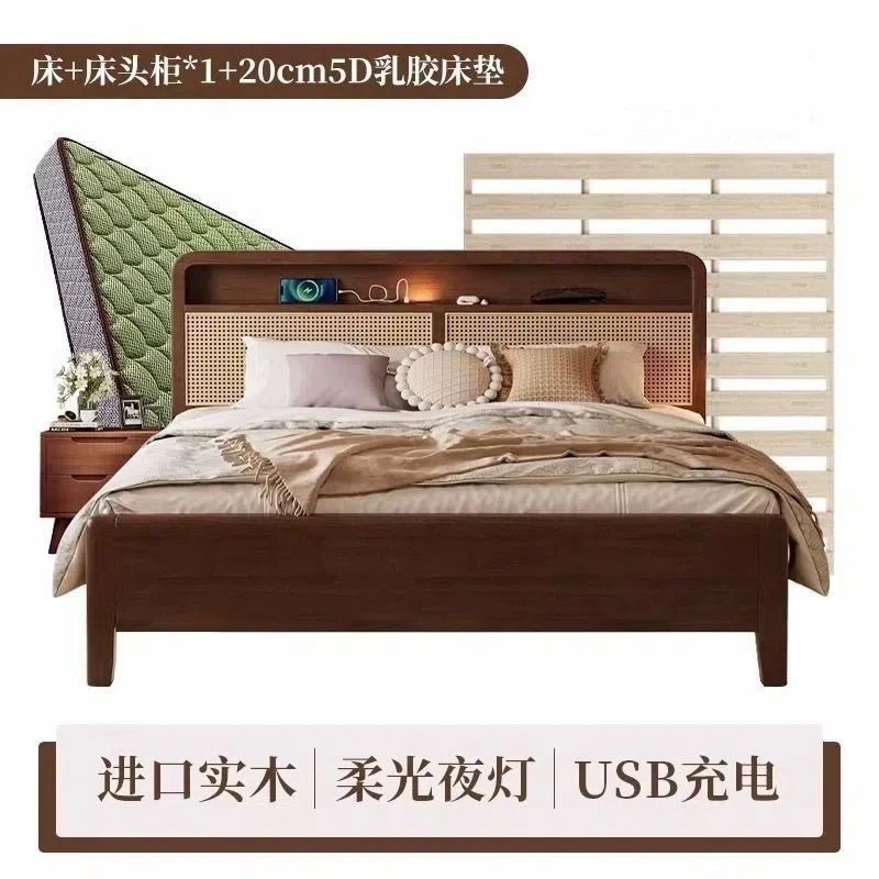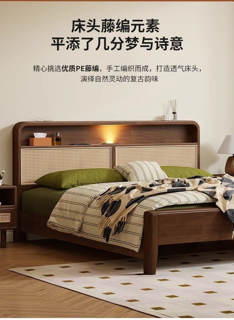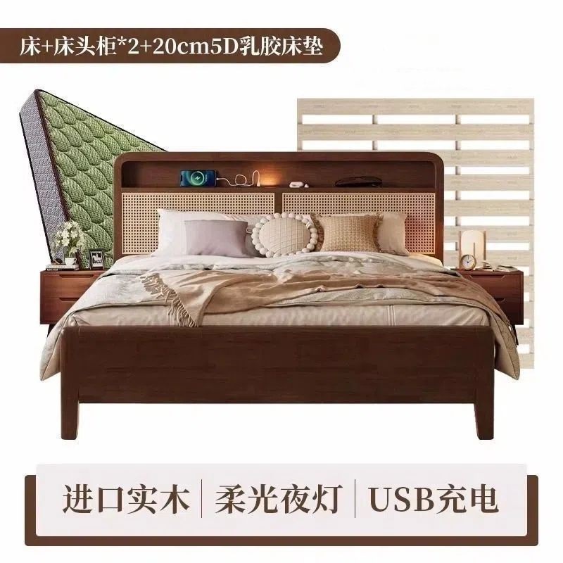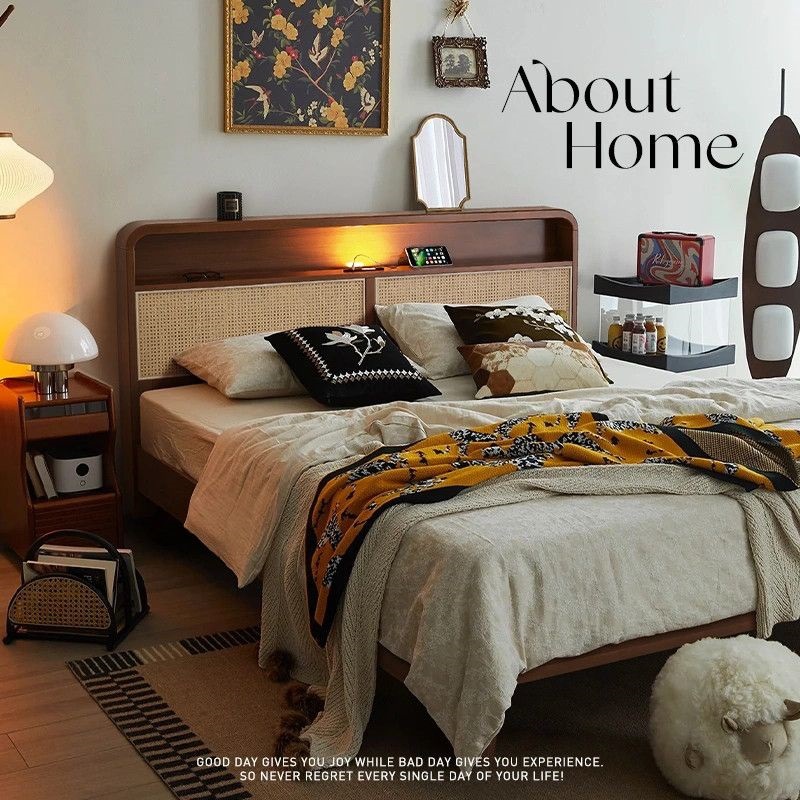 북유럽 원목 등나무 침대 B&B 복고풍 침대 와비사비 스타일 미니멀리스트 더블 침대 모던 심플 중세 스타일 침대 마스터 침실