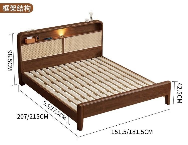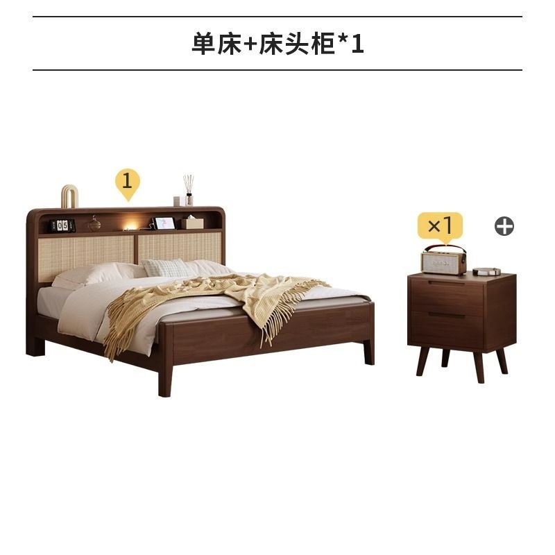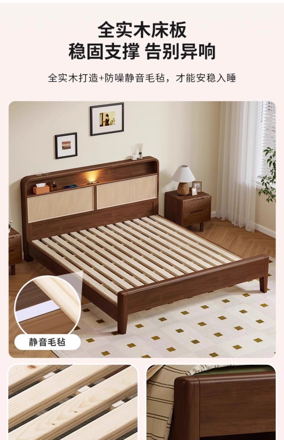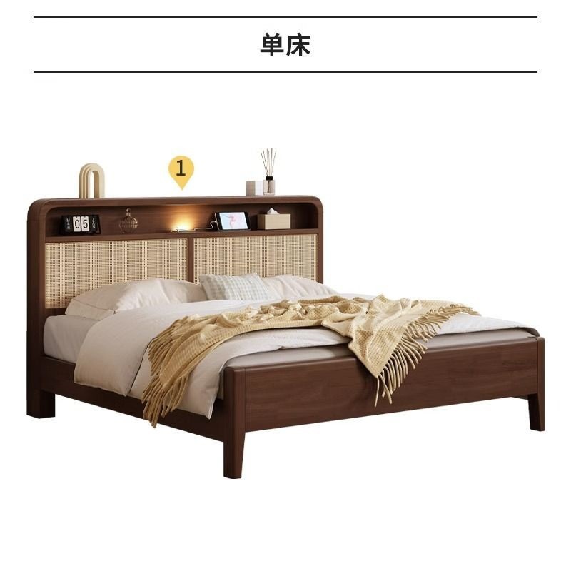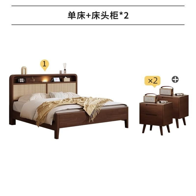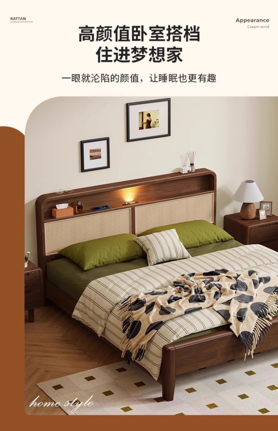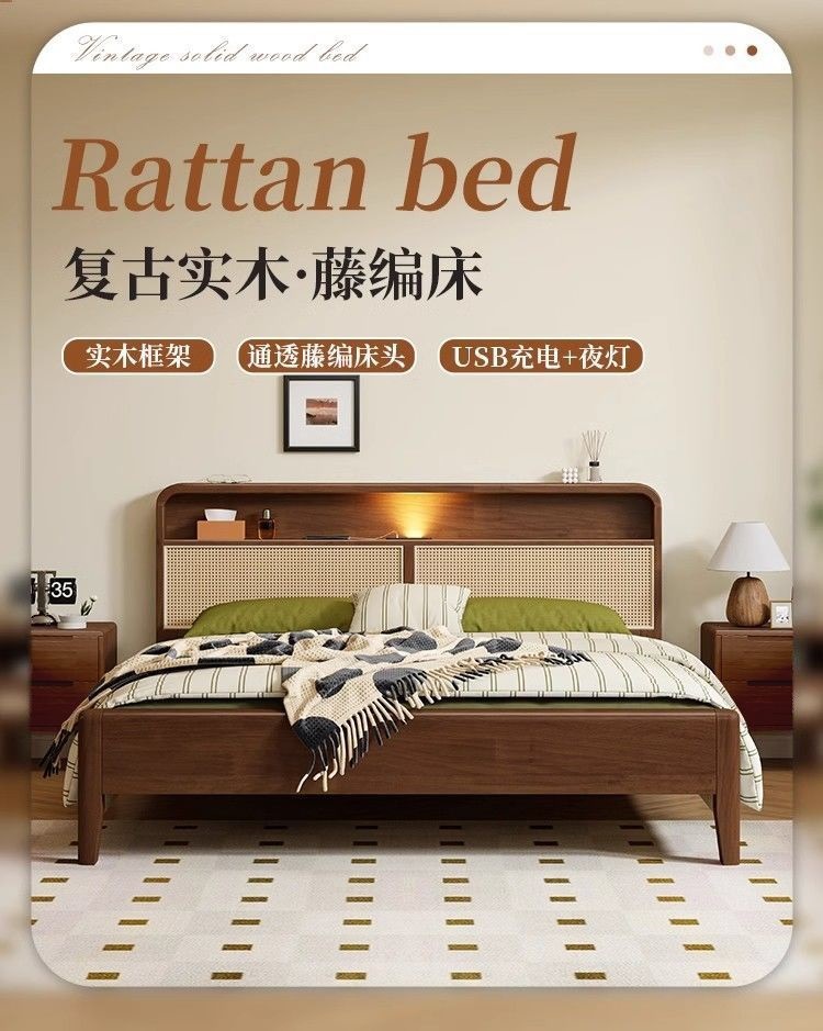 북유럽 원목 등나무 침대 B&B 복고풍 침대 와비사비 스타일 미니멀리스트 더블 침대 모던 심플 중세 스타일 침대 마스터 침실스토어 가기