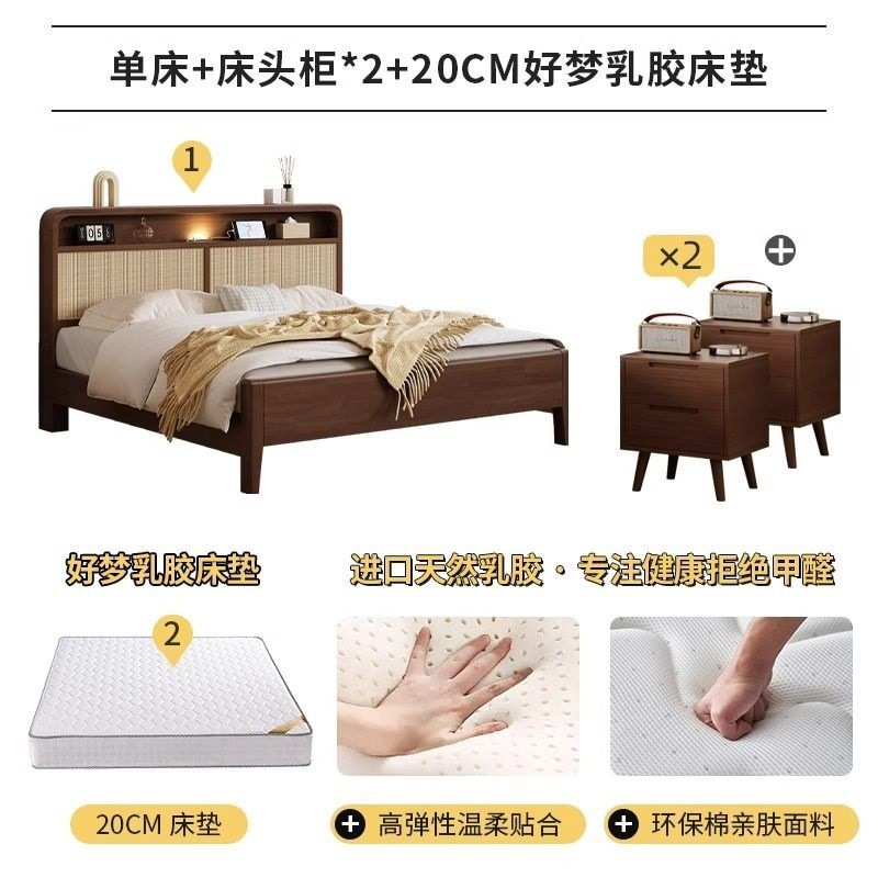 • 침대+20cm5D 라텍스 매트리스+침대 옆 탁자*2