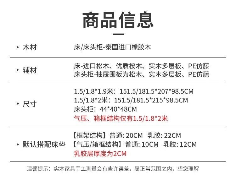 • 침대+20cm 라텍스 매트리스+침대 옆 테이블*1