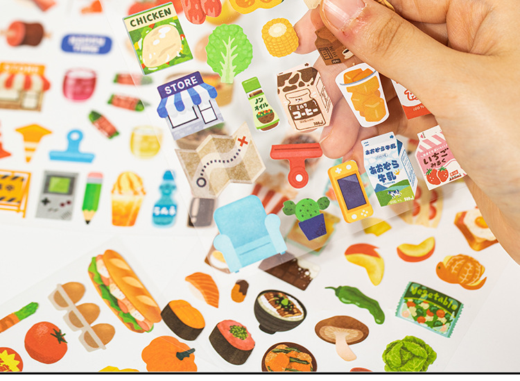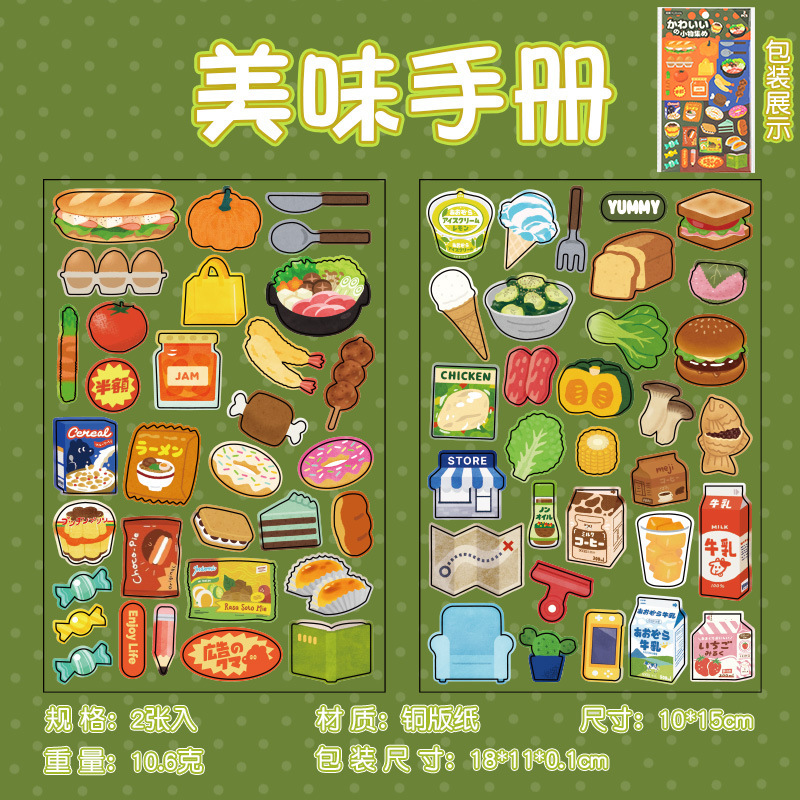 Yuxian 조경 스티커 맛있는 시간 음식 요소 어린이 핸드북 휴대 전화 케이스 DIY 장면 장식 콜라주스토어 가기