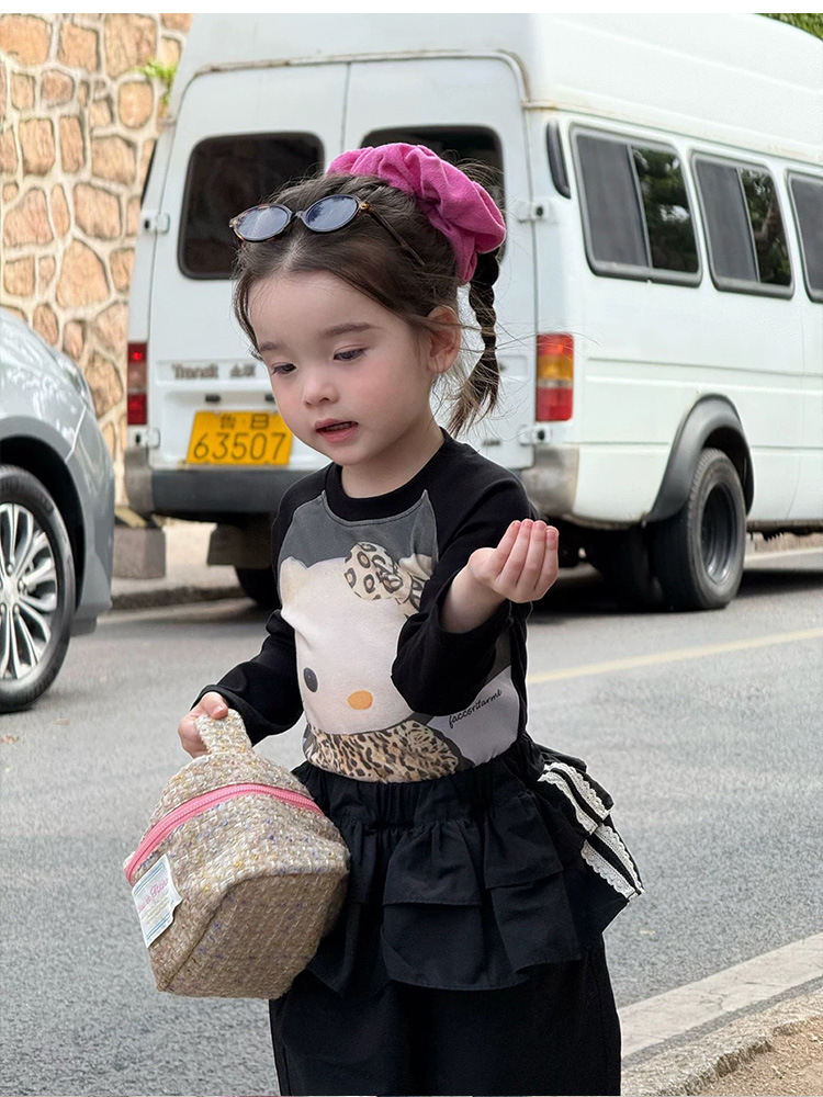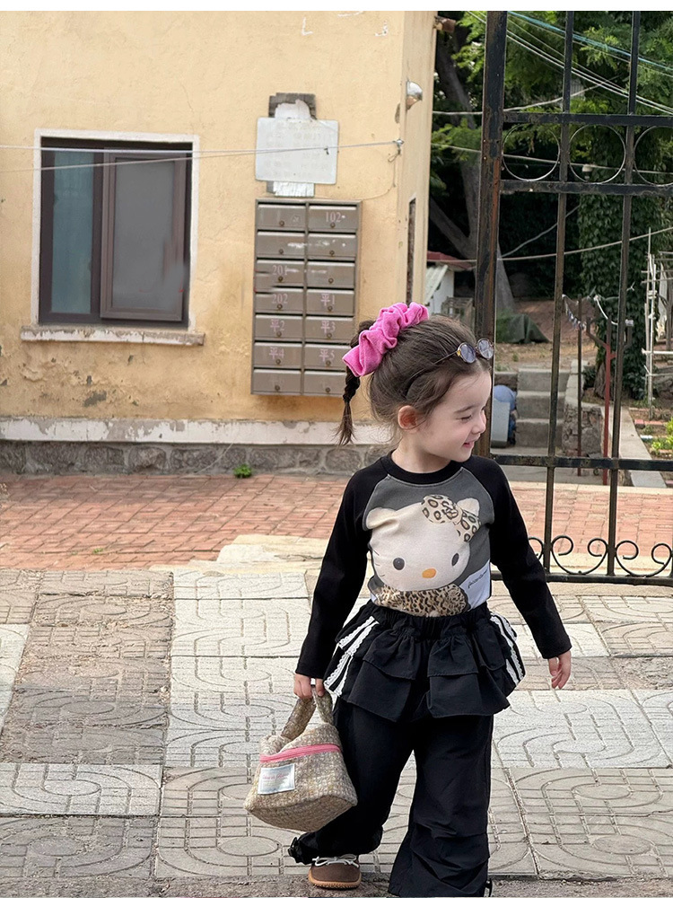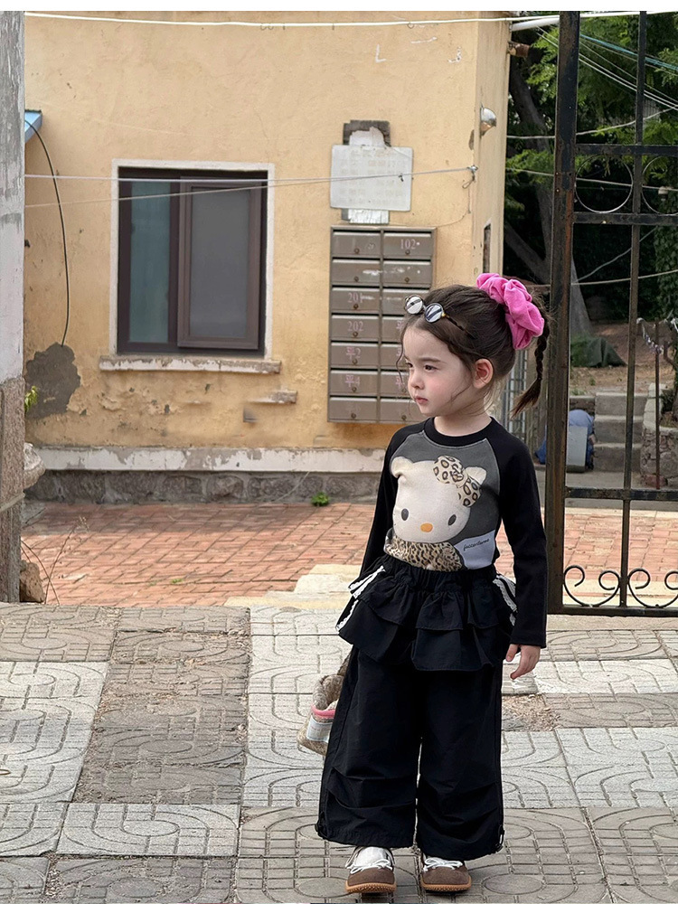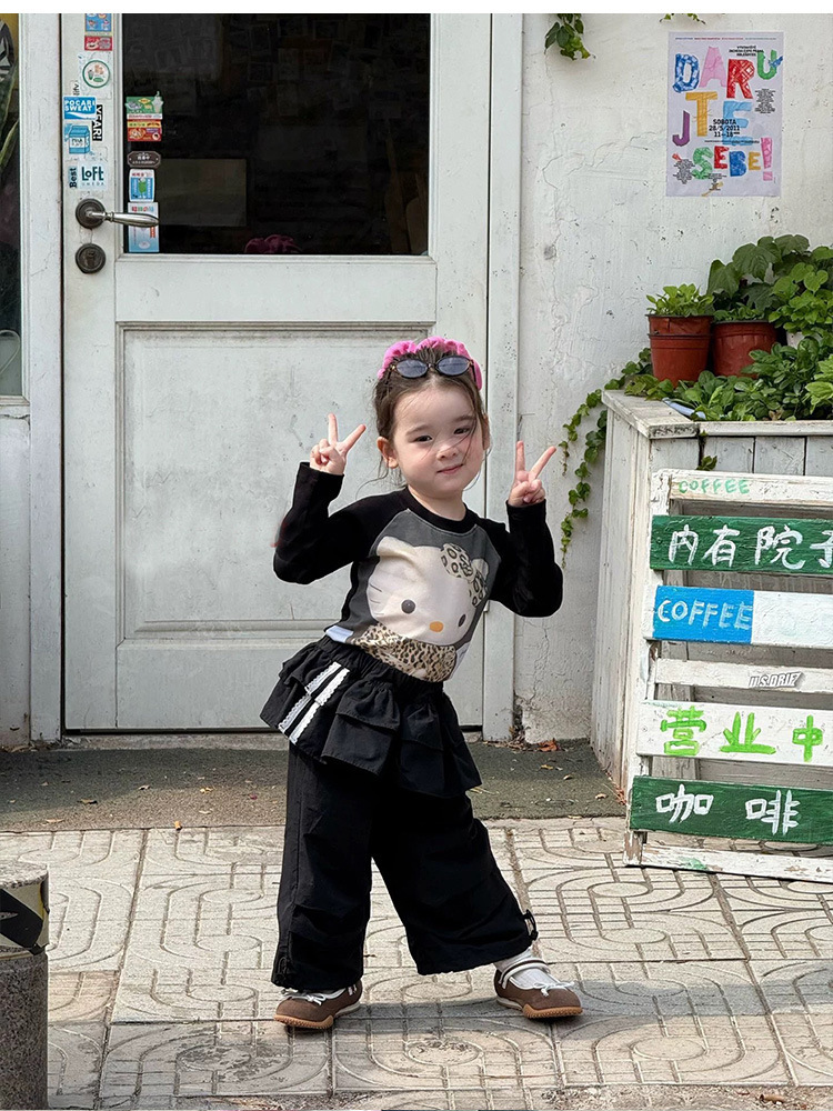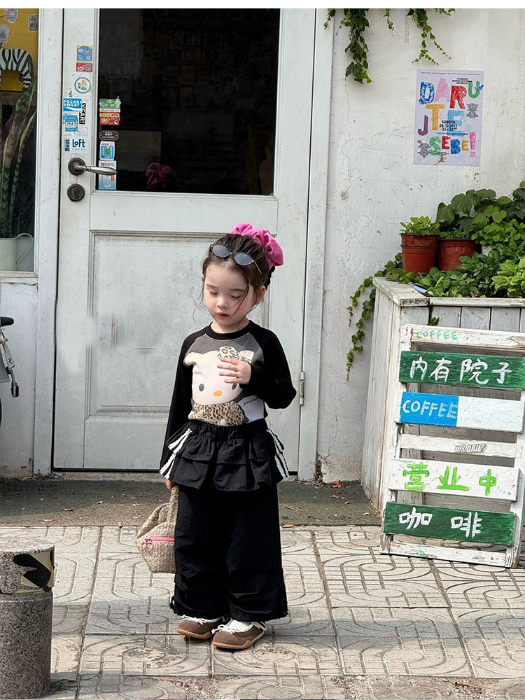 아기 느슨한 작업복 소녀 가을 넓은 다리 바지 2025 새로운 어린이 캐주얼 바지 검은 줄무늬 바지스토어 가기