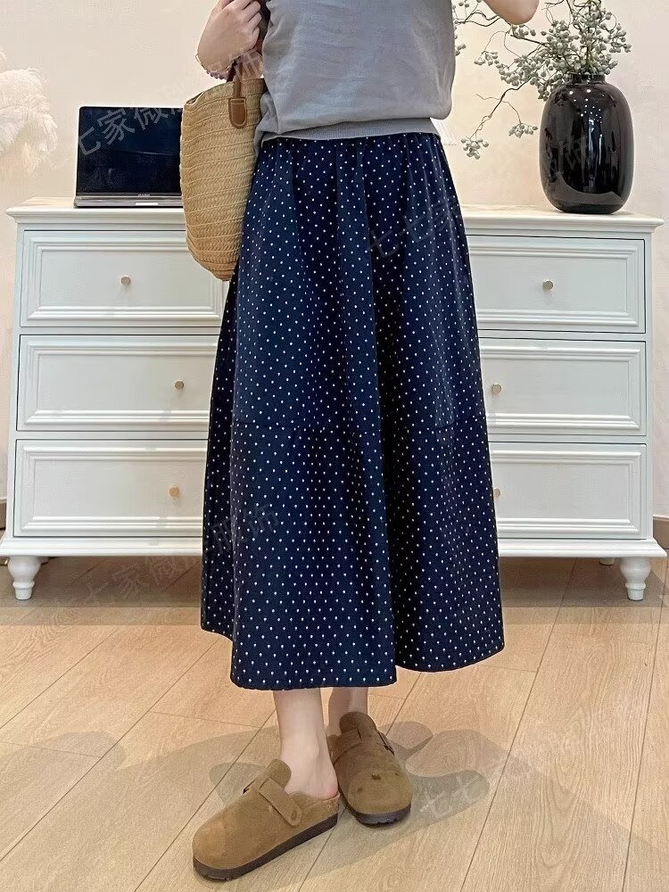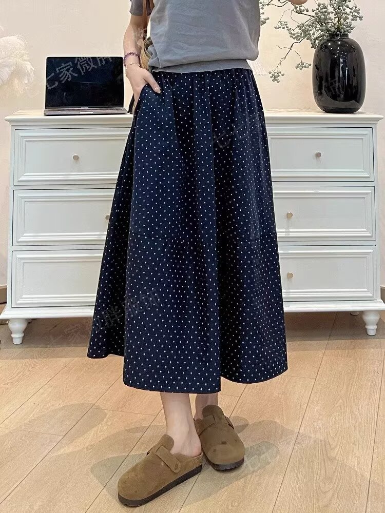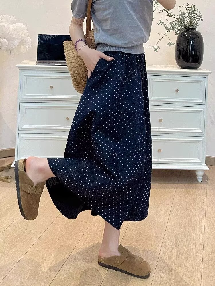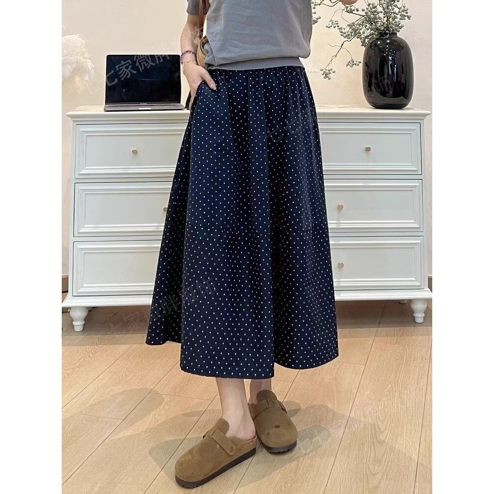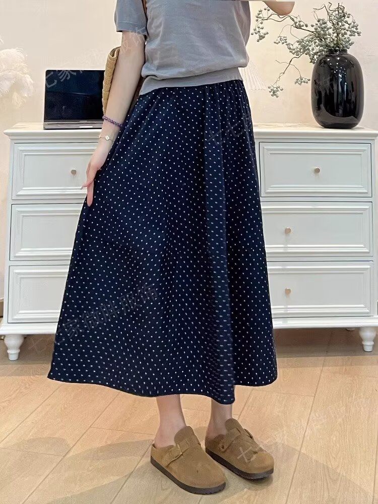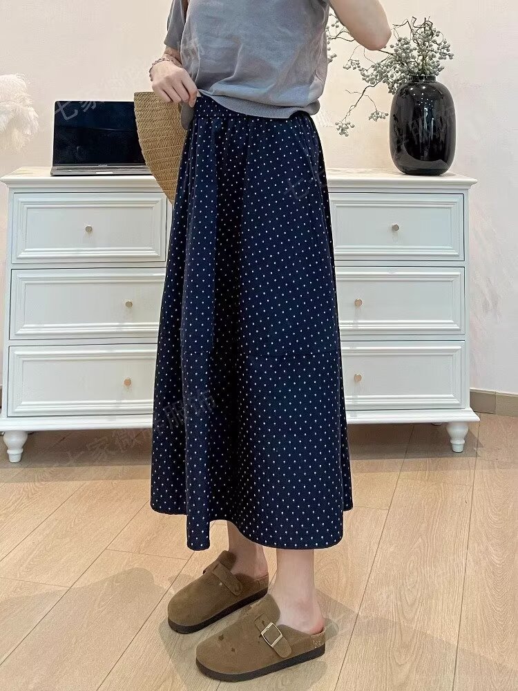 2025년 신상 여름 한국 스타일 슬림하고 활용도가 높으며 디자인이 돋보이는 햅번풍 도트무늬 스커트