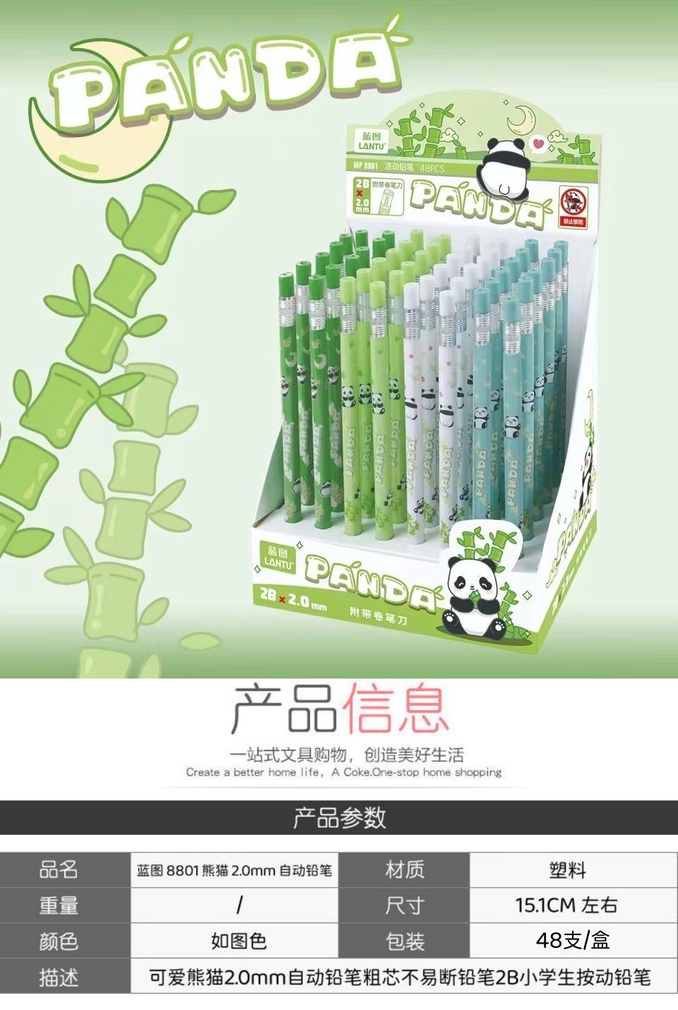 팬더 두꺼운 코어 2.0mm 시험 펜 2 교체 가능한 코어가 있는 학생용 2B 자동 연필 프레스 연필 귀여운 만화스토어 가기