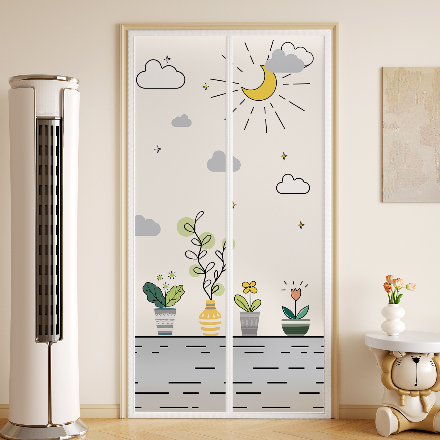 자석 EVA 에어컨 도어 커튼, 에어컨 방지 칸막이 커튼, 2025년 새로운 펀치 프리 모기 방지 및 방풍 침실 개인 정보 보호 커튼스토어 가기