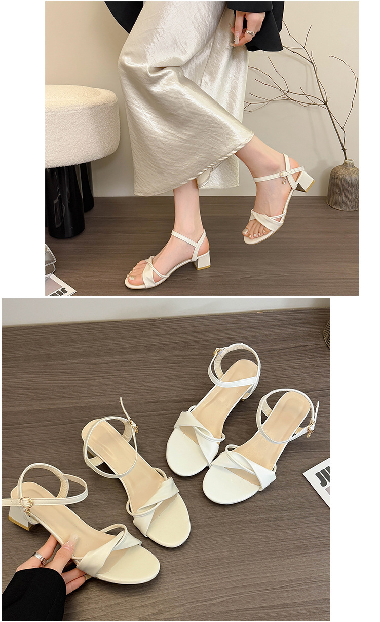여성용 대형 하이힐 샌들 2025 여름 새로운 스타일 하이 엔드 심플한 두꺼운 굽 다용도 슬리밍 원 스트랩 여성 샌들스토어 가기