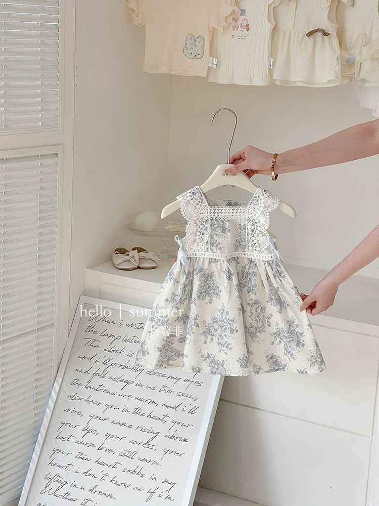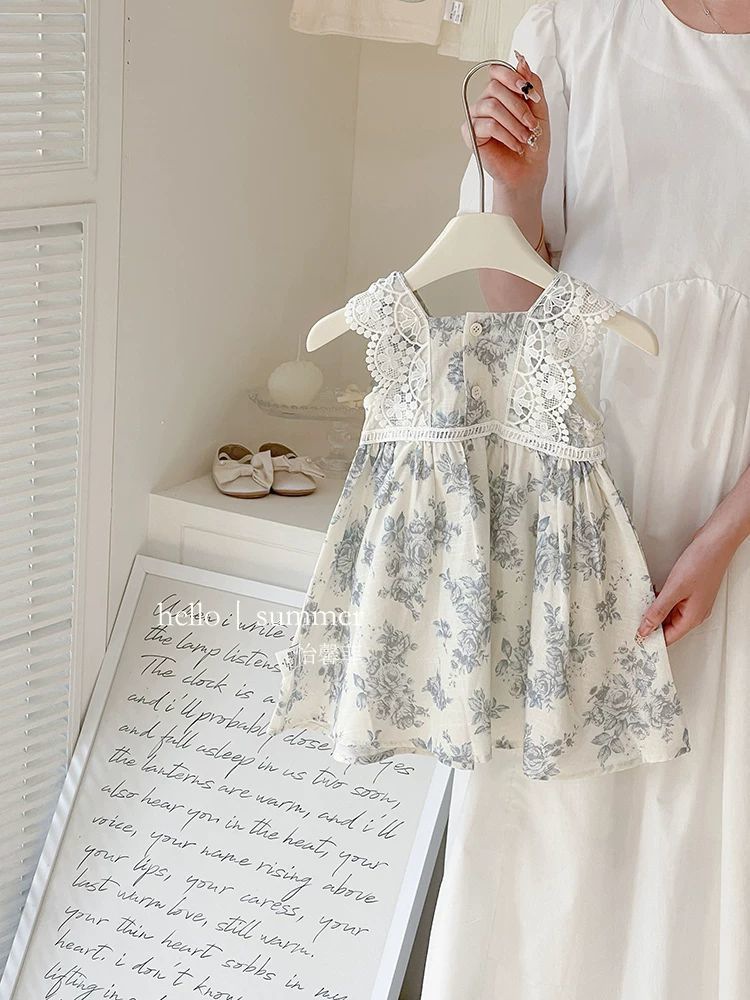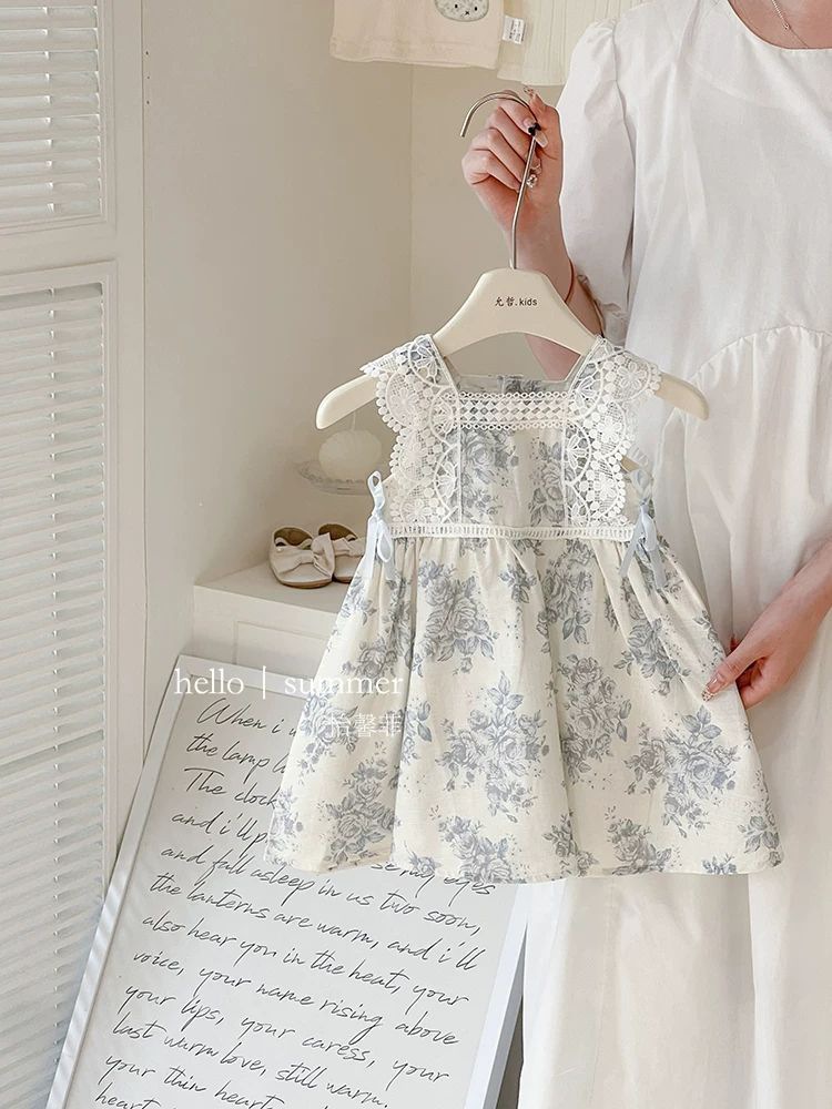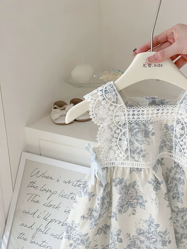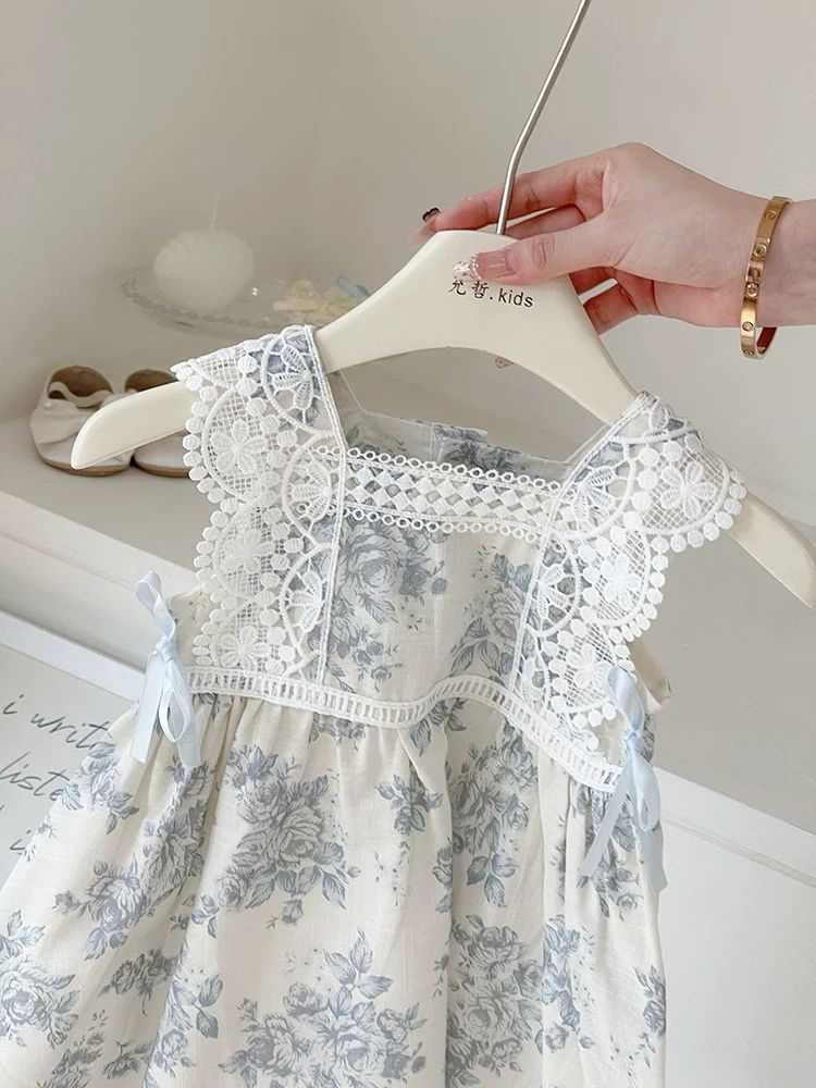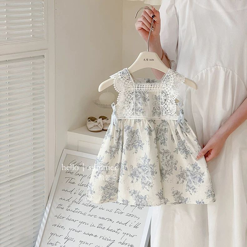 여자 여름 드레스 아기 유행 어린이 맞춤형 유행 브랜드 목가적 인 꽃 레이스 공주 조끼 드레스