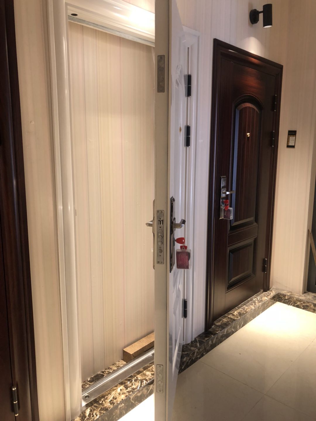 새로운 강철 도난 방지 도어 순수한 흰색 스프레이 잔디 잠금 장치 잠금 장치 입구 문 태양 보호 엔지니어링 도어 공장 직접 판매스토어 가기