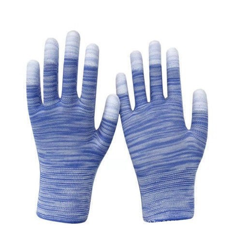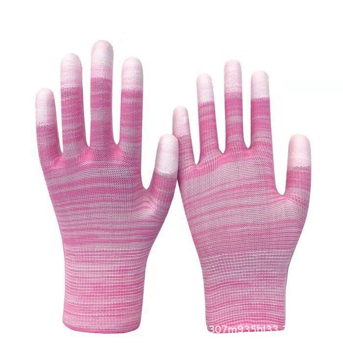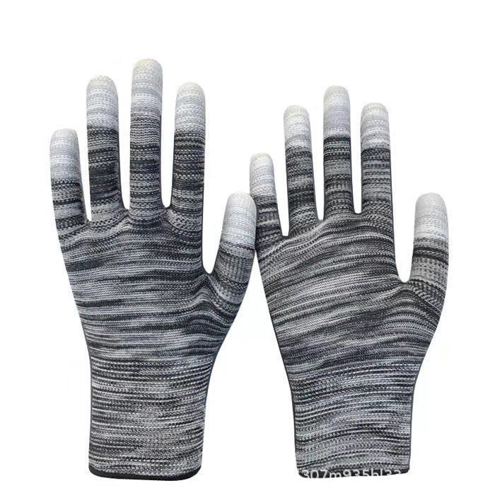 맞춤형 PU 코팅 손가락과 손바닥 정전기 방지 장갑 줄무늬 내마모성 작업 나일론 고무 코팅 얇은 장갑 노동 보호 장갑