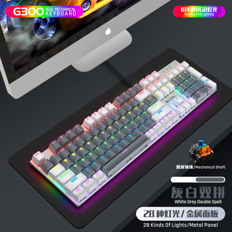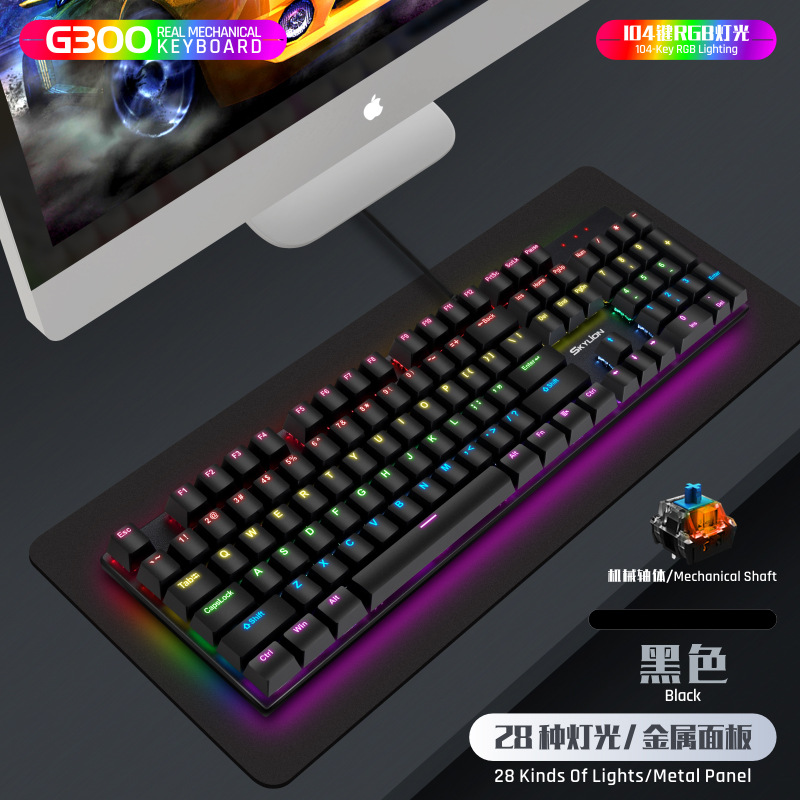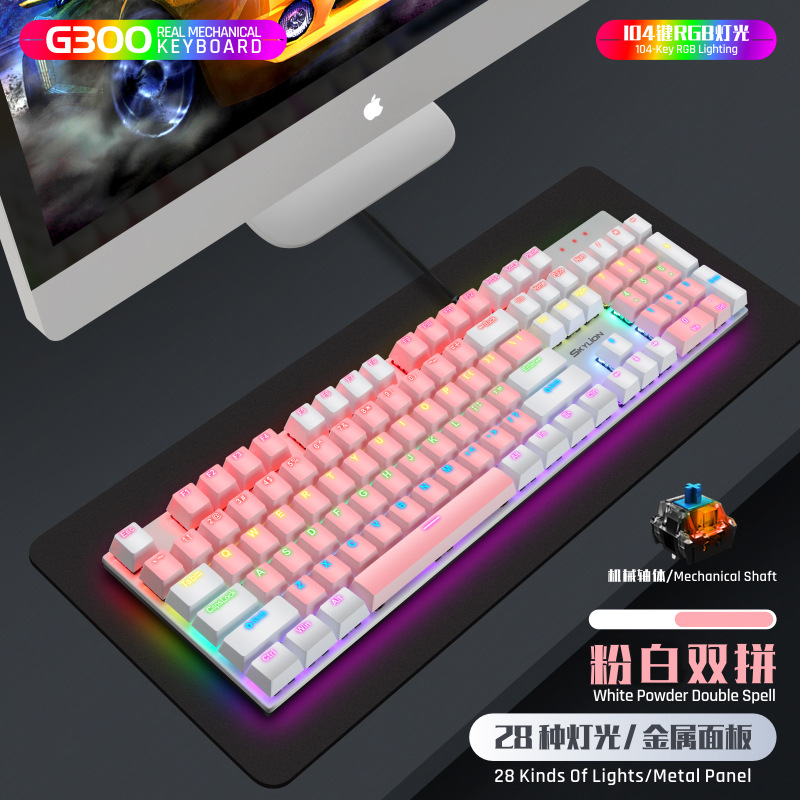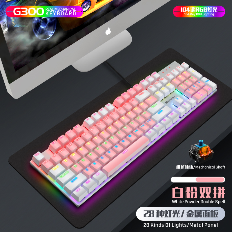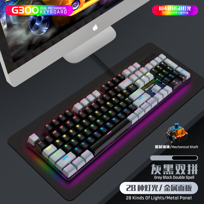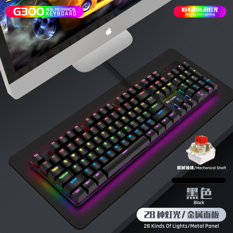 G300 진정한 기계식 금속 유선 104 키 녹색 축 키보드 게임 RGB 말뚝 검정색 축 차 축 빨간색 축스토어 가기