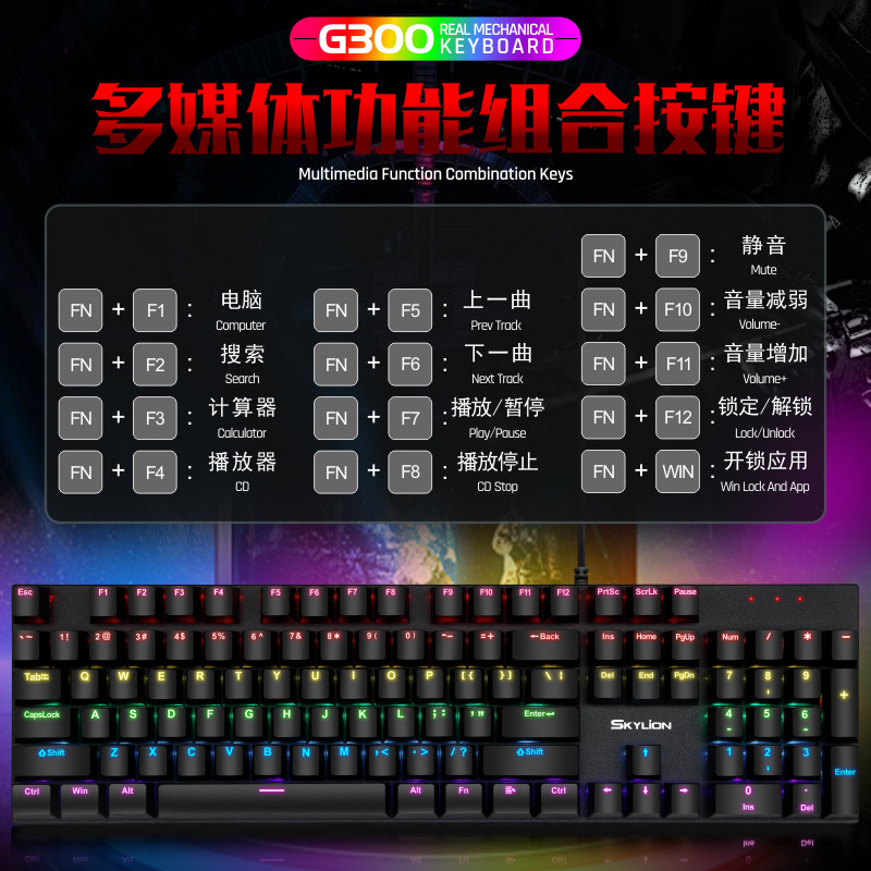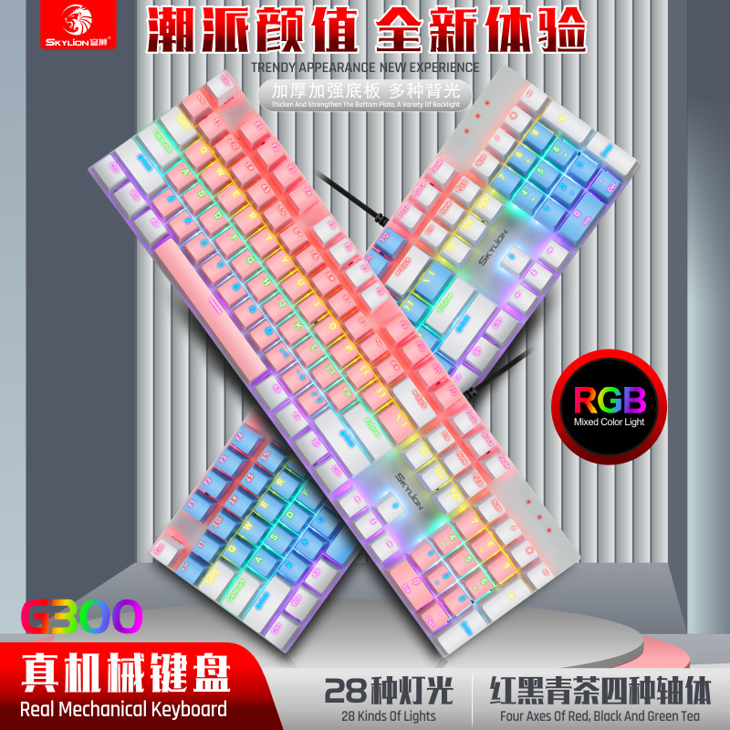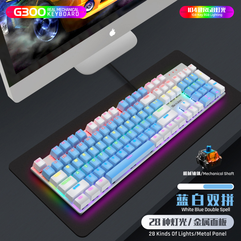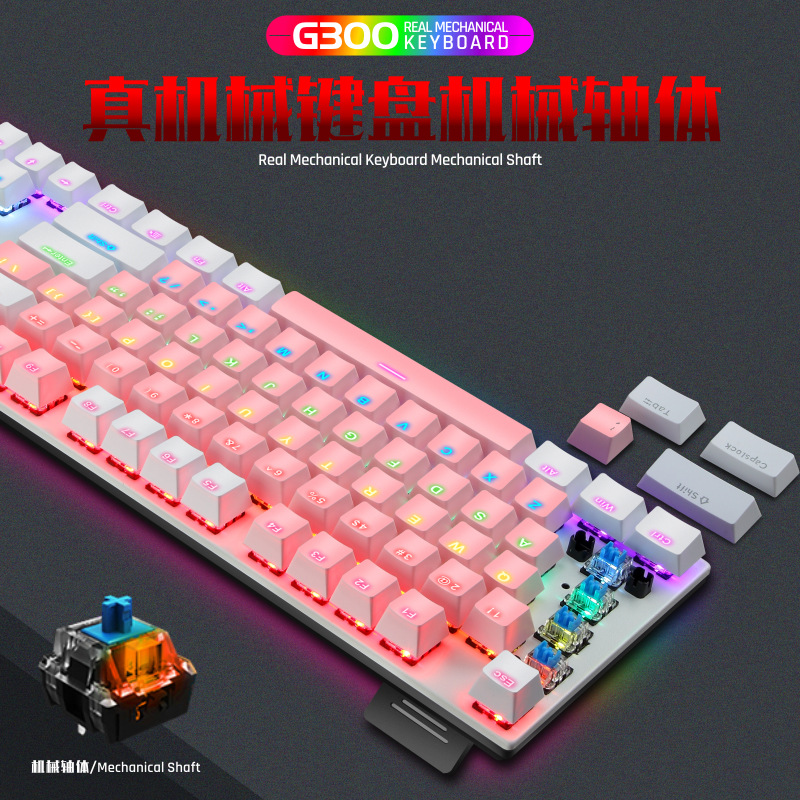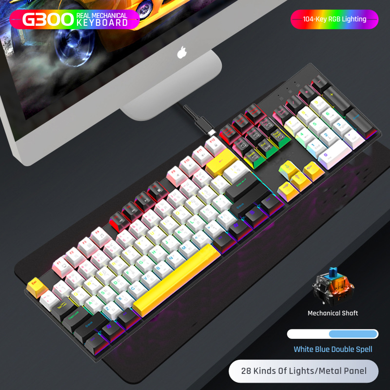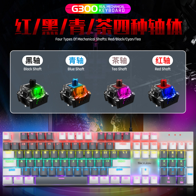 G300 진정한 기계식 금속 유선 104 키 녹색 축 키보드 게임 RGB 말뚝 검정색 축 차 축 빨간색 축스토어 가기