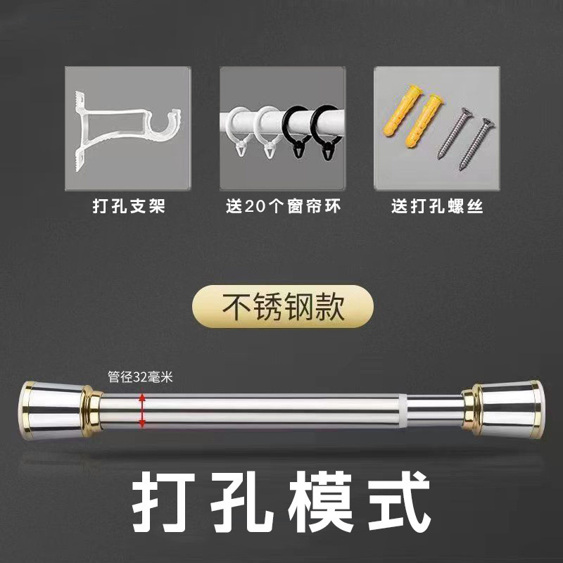 커튼봉 펀칭형, 두꺼운 커튼 로만봉, 더블봉 브라켓 풀세트, 텔레스코픽 펀치프리 세트