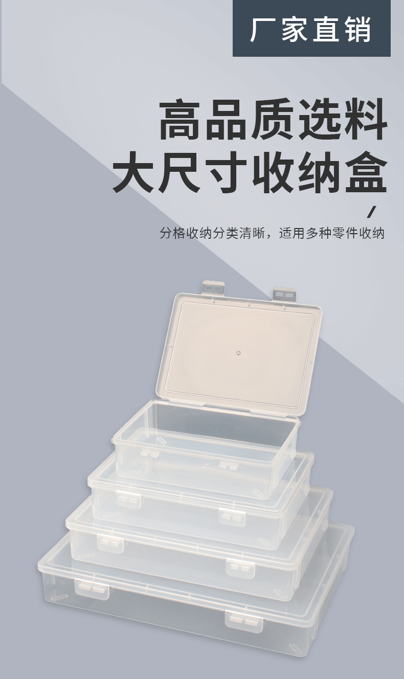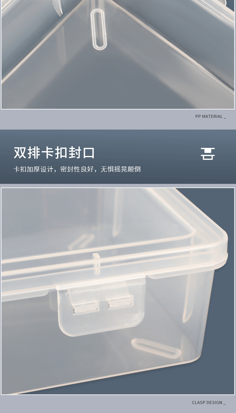 직사각형 대형 투명 PP 재료 장난감 문구 플라스틱 두꺼운 PP 보관 상자 하드웨어 퍼즐 더블 버클 데스크탑