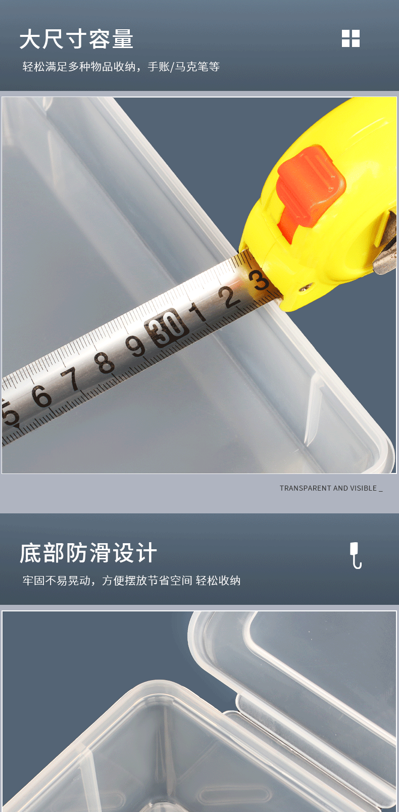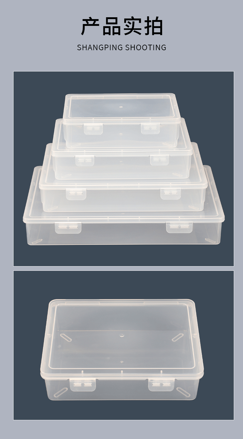 직사각형 대형 투명 PP 재료 장난감 문구 플라스틱 두꺼운 PP 보관 상자 하드웨어 퍼즐 더블 버클 데스크탑스토어 가기