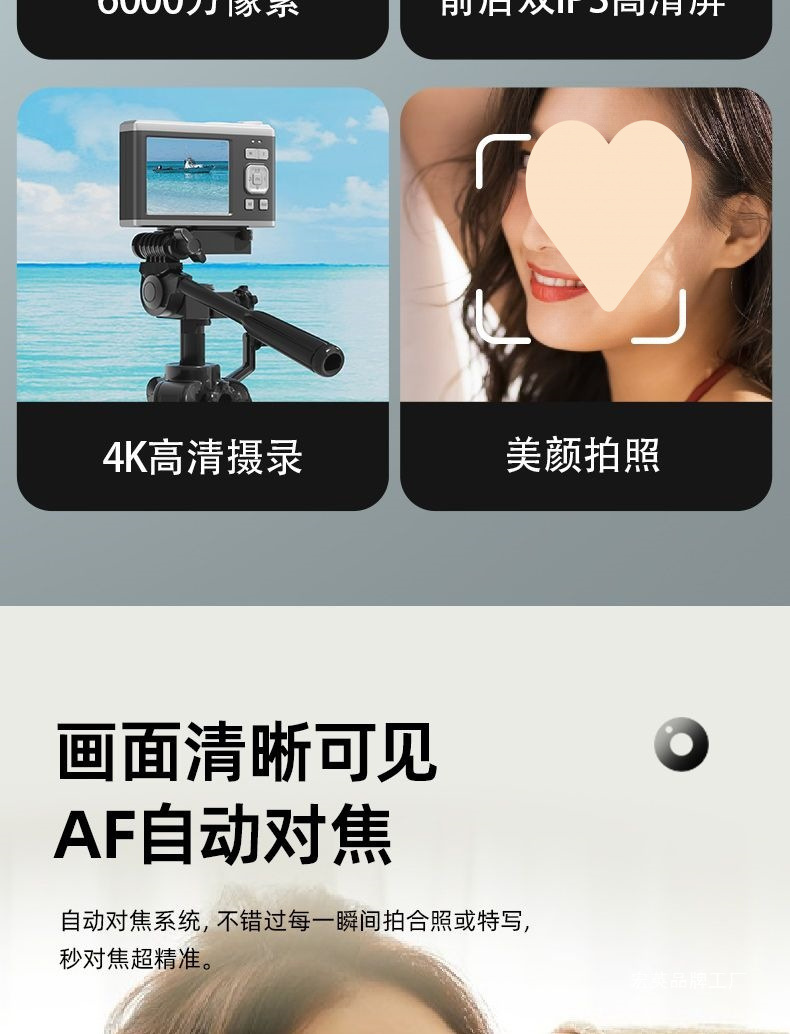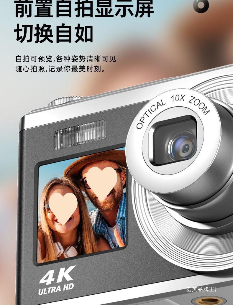 접이식 듀얼 렌즈 4K 고화질 픽셀 디지털 CCD 카메라 캠퍼스 미니 폴라로이드 학생 파티 휴대용