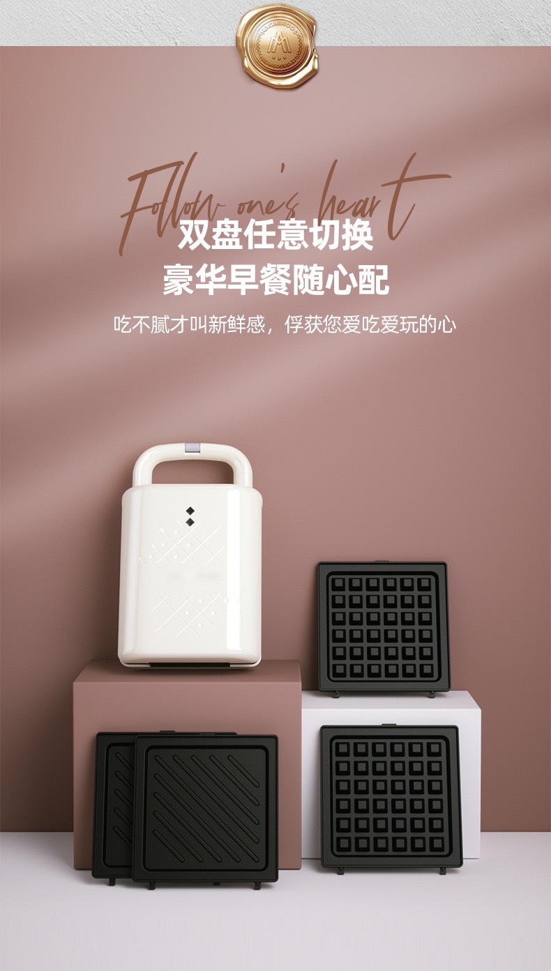 • 화이트 샌드위치 플레이트 + 와플 플레이트 국가 표준 220V