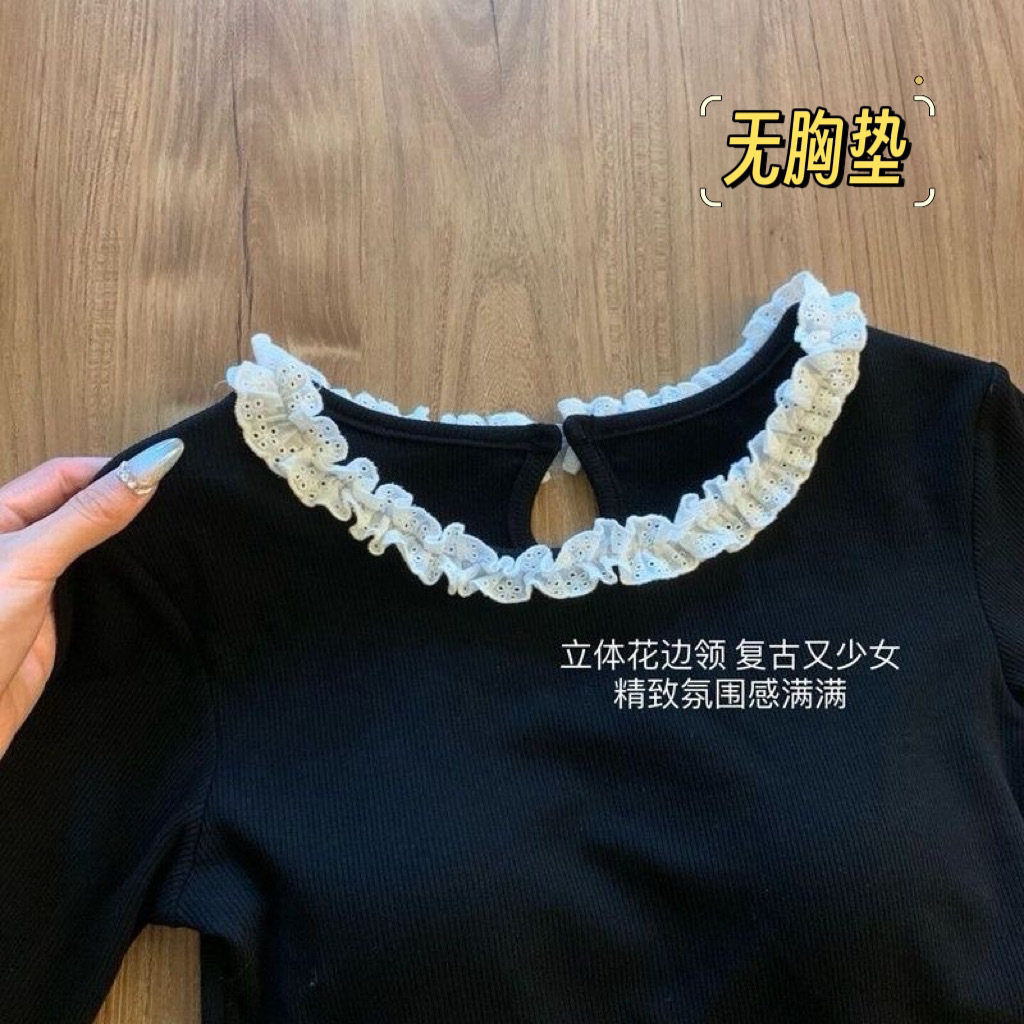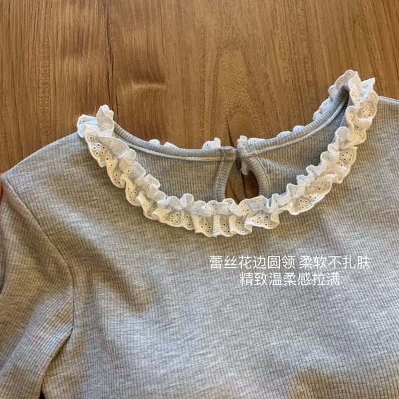 여아 봄, 가을 긴팔 면 티셔츠 새로운 스타일 아동 스타일 아기 소녀 레이스 칼라 세련된 겉옷 다용도 베이스