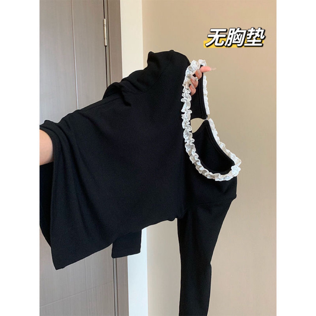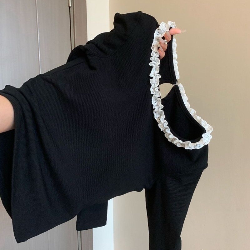 • 블랙 레이스 칼라 티셔츠