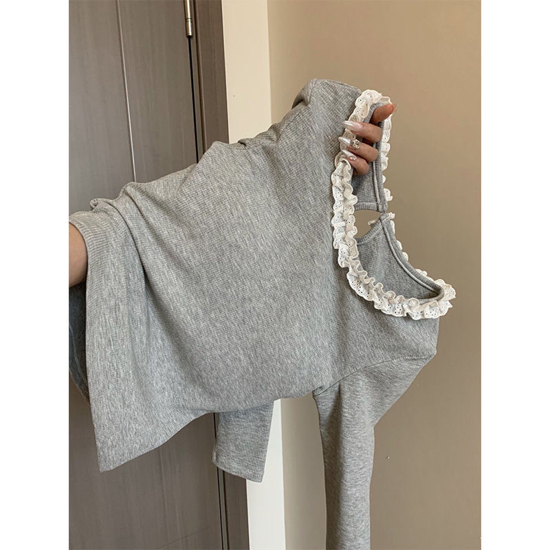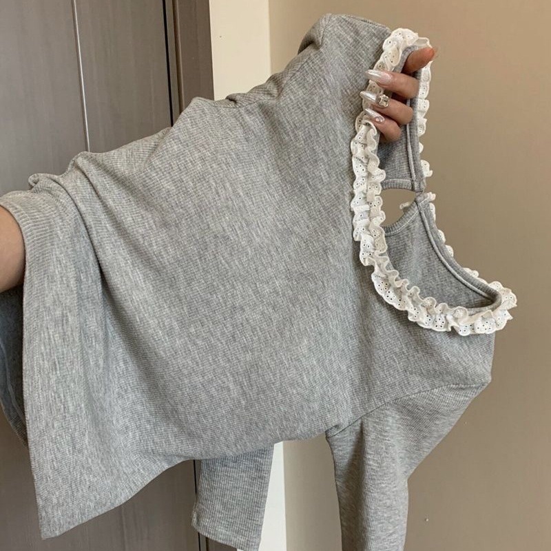 • 그레이 레이스 칼라 티셔츠