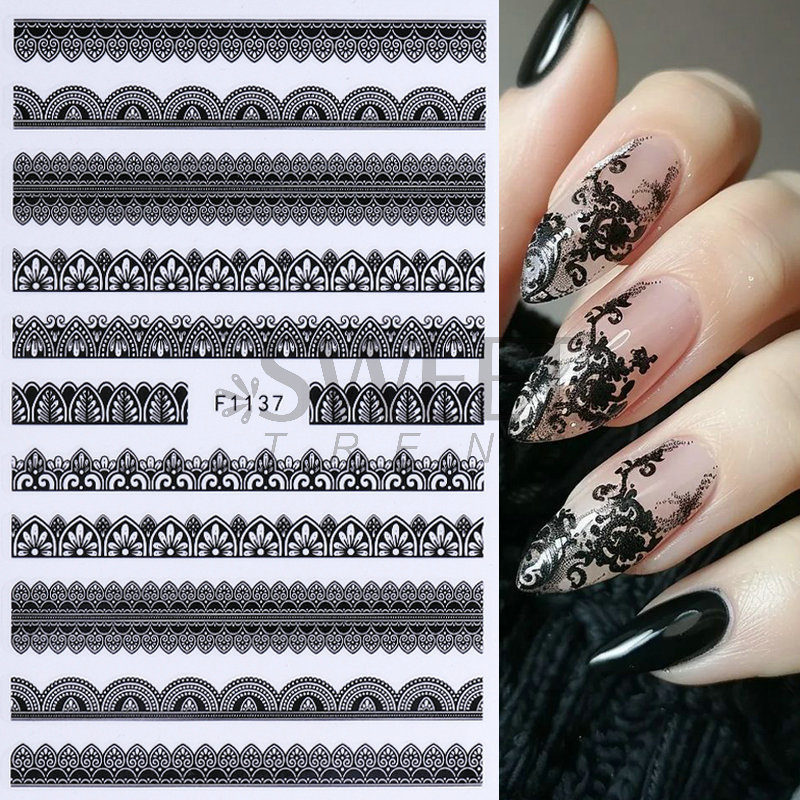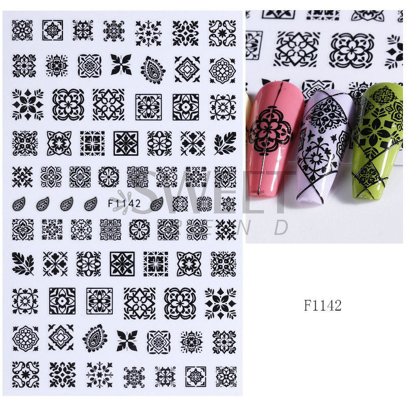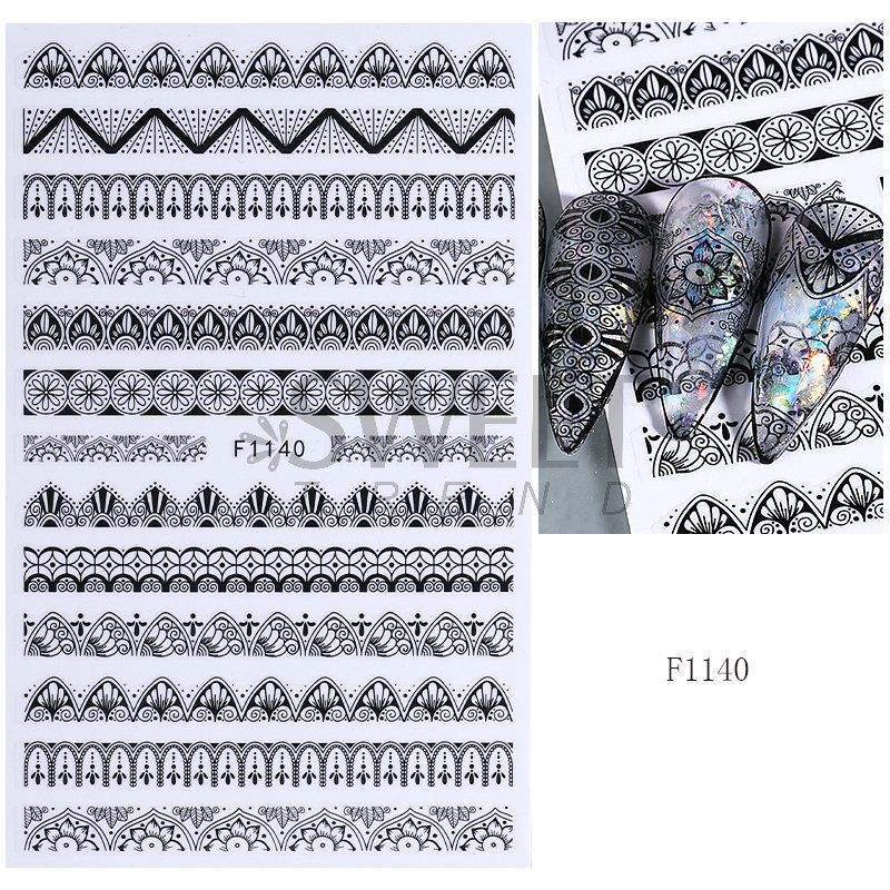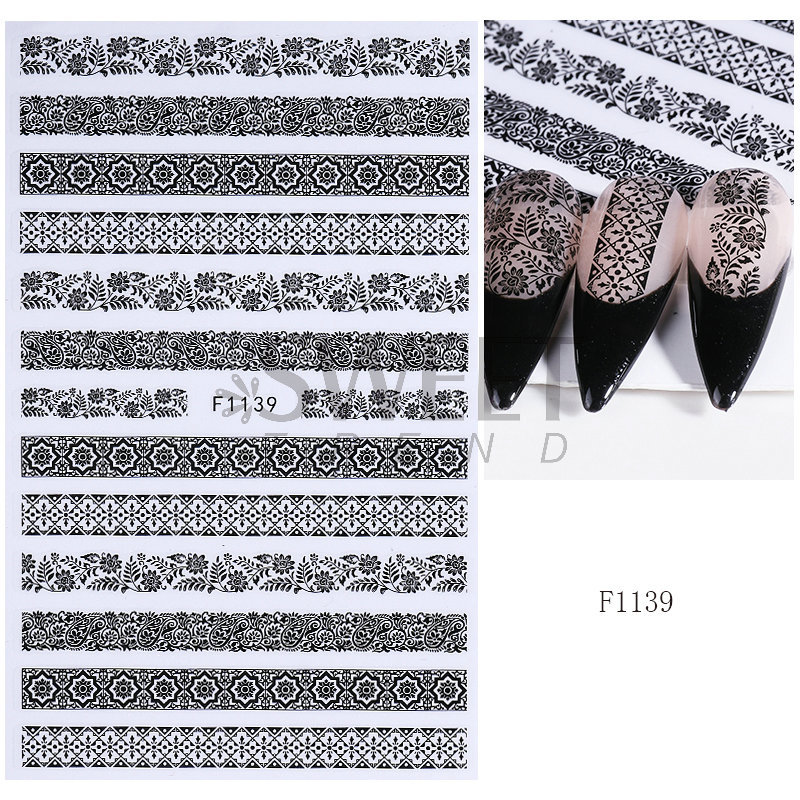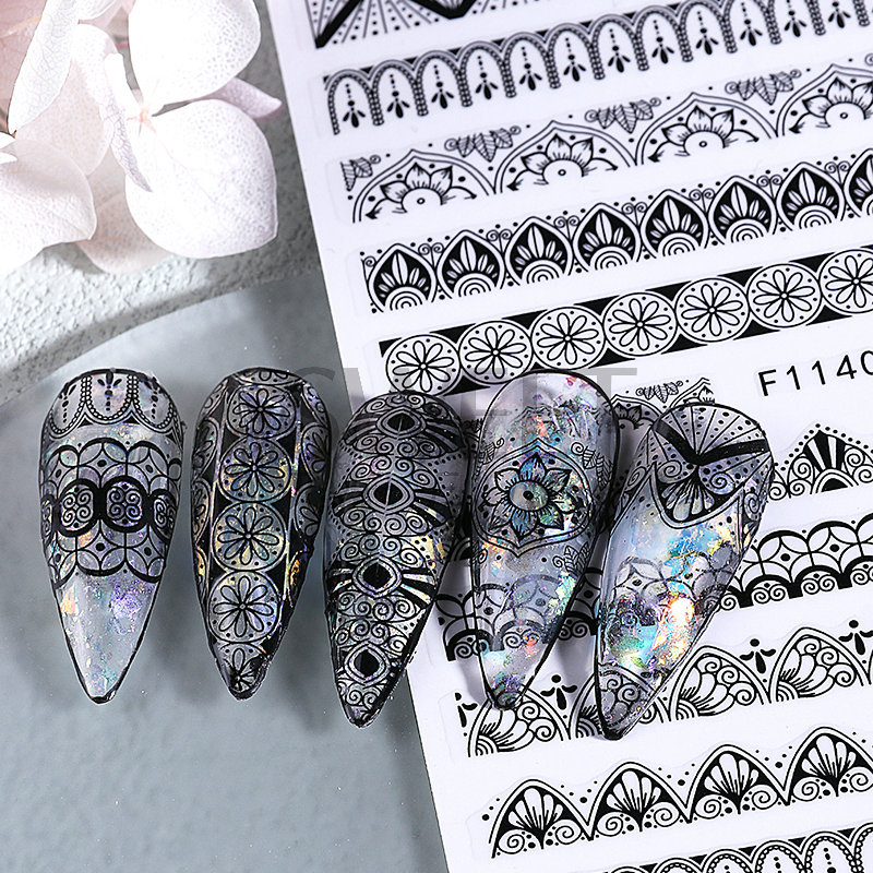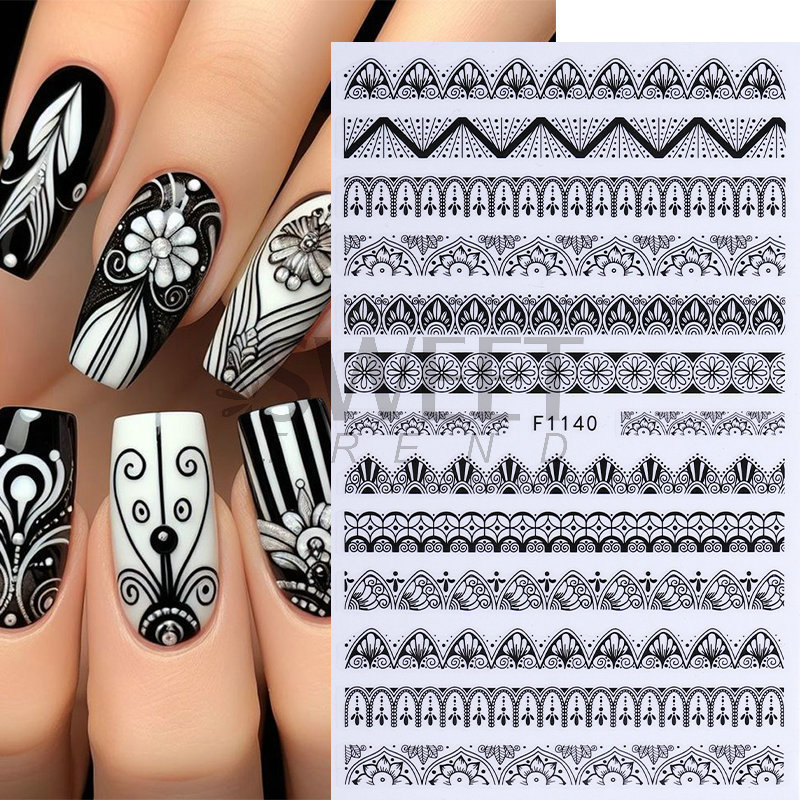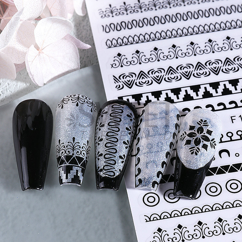 국경 간 인기 판매 새로운 네일 아트 스티커 동유럽 사우디 스타일 민족 초상화 기하학적 흑백 레이스 접착 스티커스토어 가기