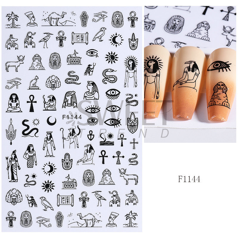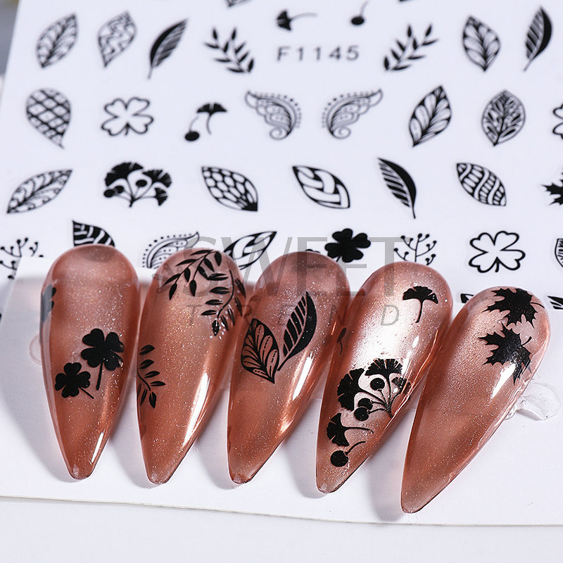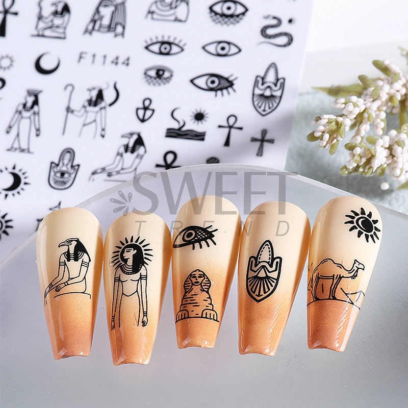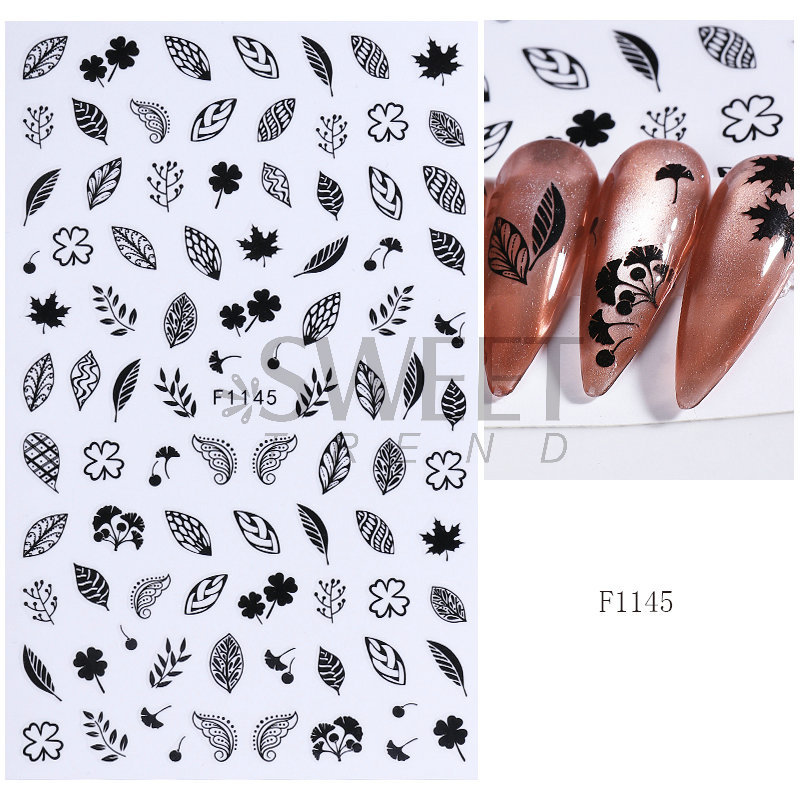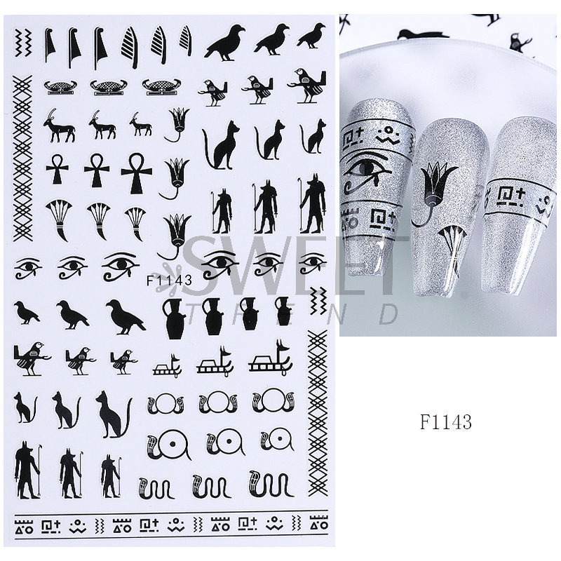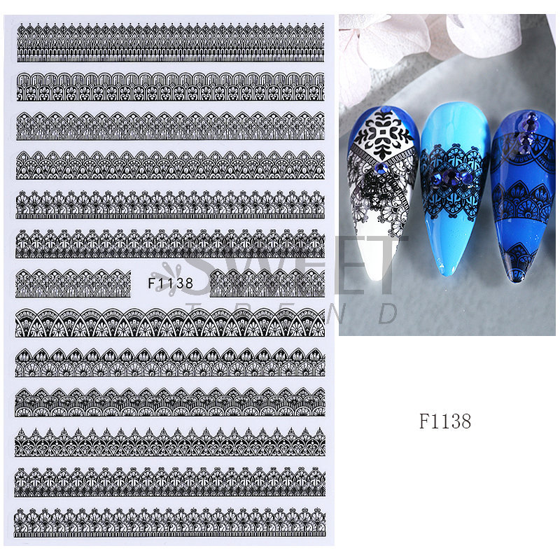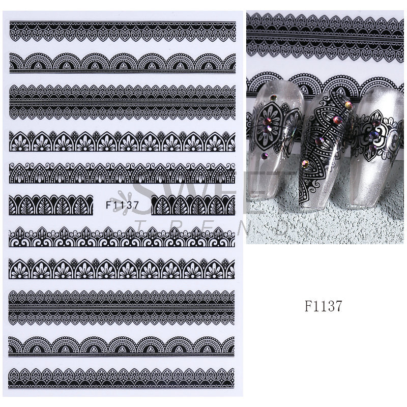 국경 간 인기 판매 새로운 네일 아트 스티커 동유럽 사우디 스타일 민족 초상화 기하학적 흑백 레이스 접착 스티커스토어 가기