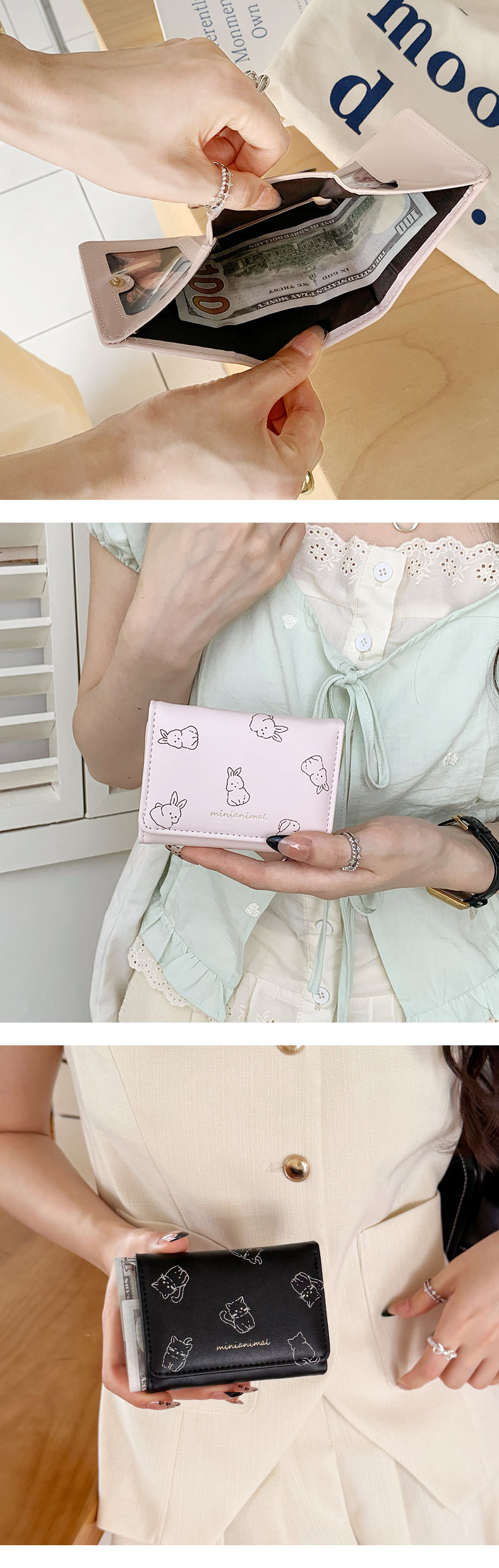 고양이와 토끼 작은 70% off 학생 여성 지갑 시간 심플 대용량 한국 스타일 재고 있음 도매 지갑