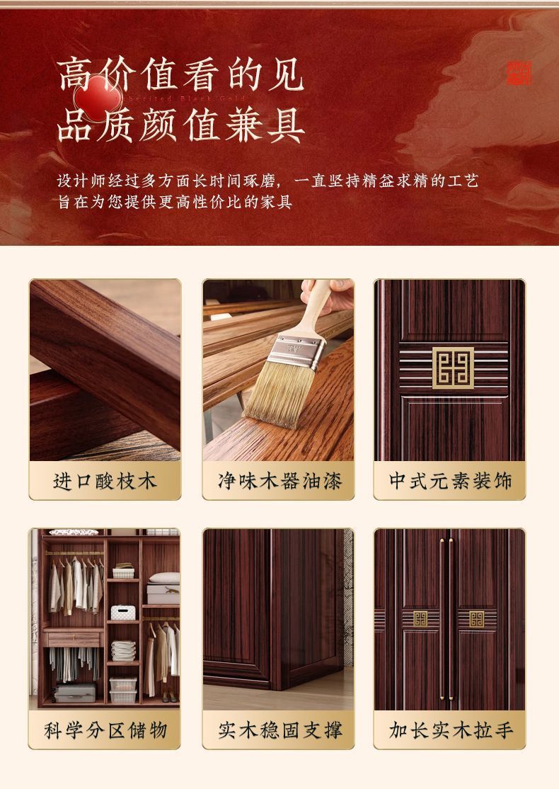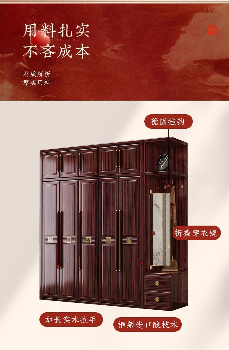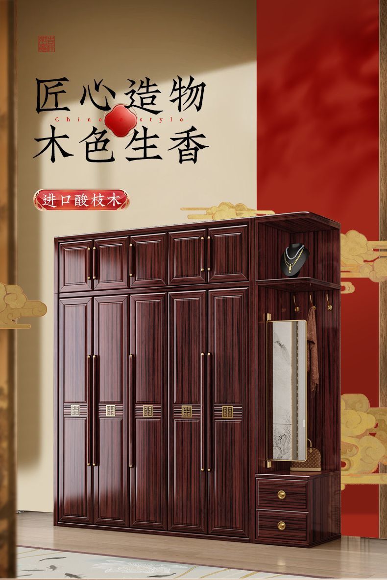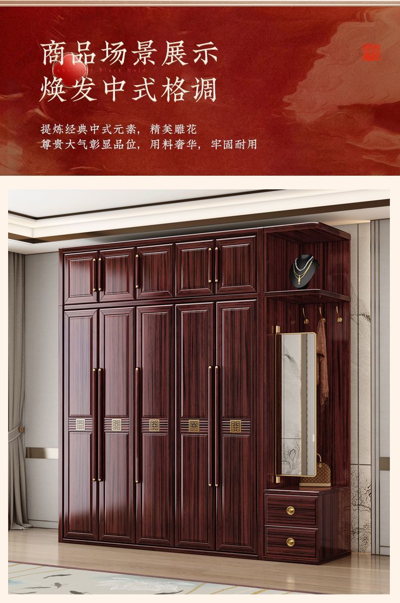 맞춤형 가정용 침실 옷장, 모던하고 심플한 수납장, 거울이 있는 레드우드 수납장, 새로운 중국 스타일의 로즈우드 수납장, 해외 직구스토어 가기