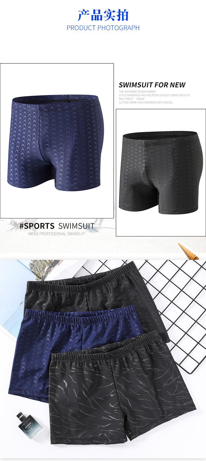(프로모션 클리어런스 가격) 인기 있는 모조 상어 가죽 성인 수영 팬티 남성용 속건성 당황 방지 복서 비치 수영 팬티스토어 가기