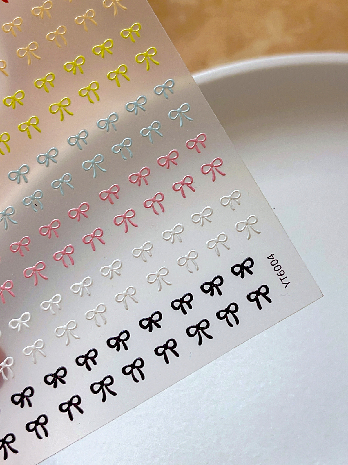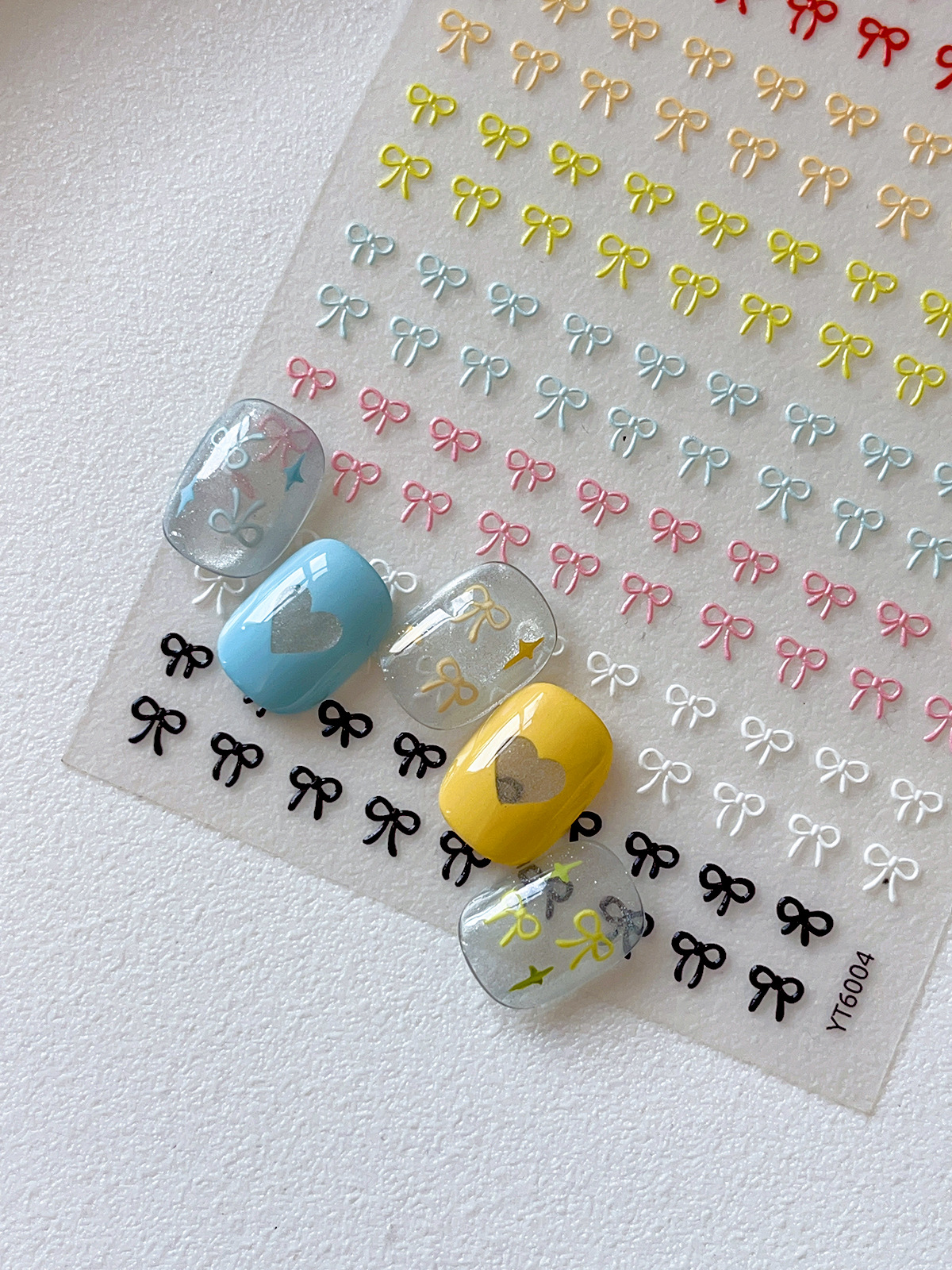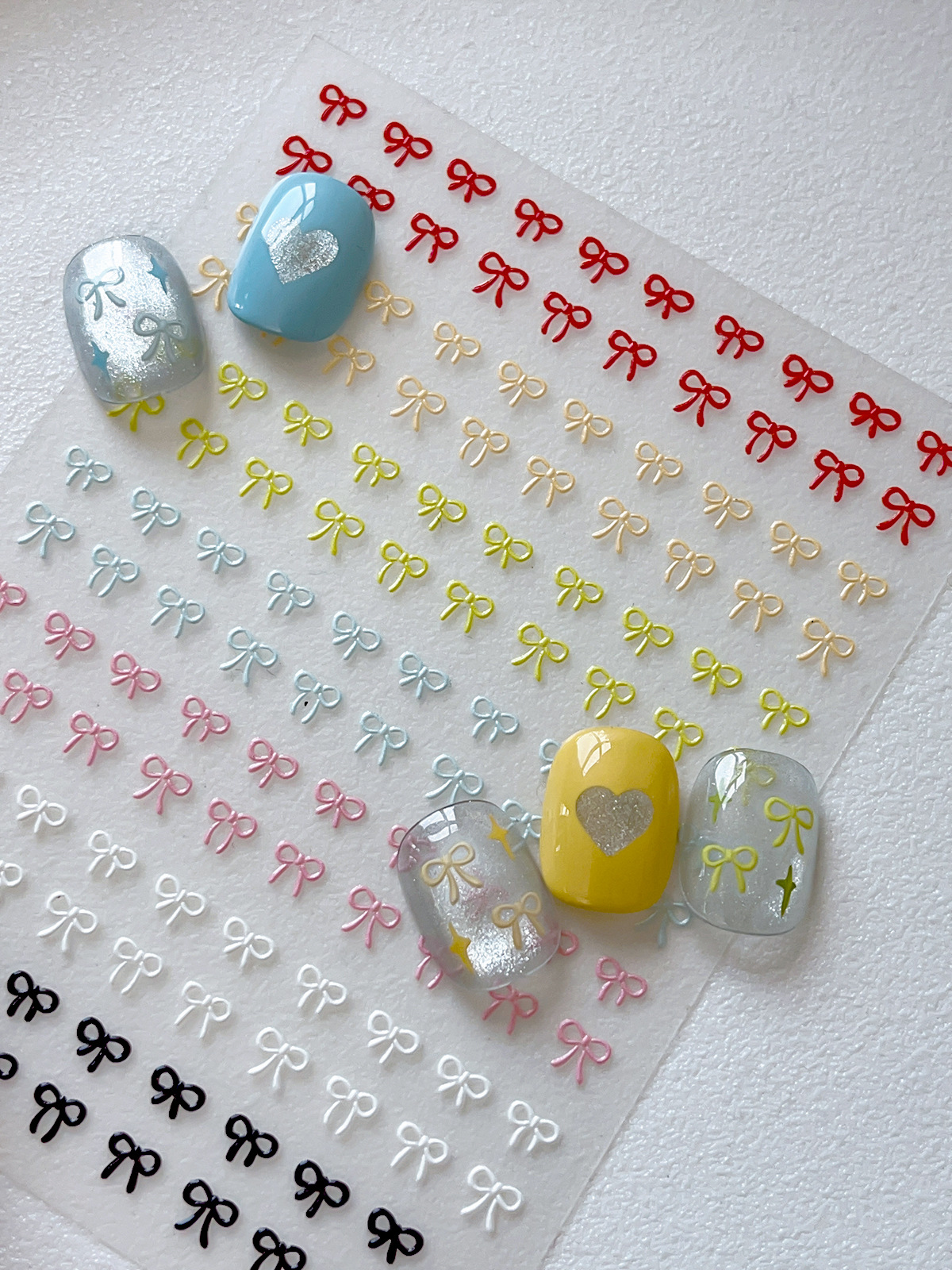 나비 매듭 네일 아트 스티커 핫 스탬핑 실버 레드 흑백 간단한 나비 매듭 스티커 접착제 뒷면 양각 네일 스티커스토어 가기