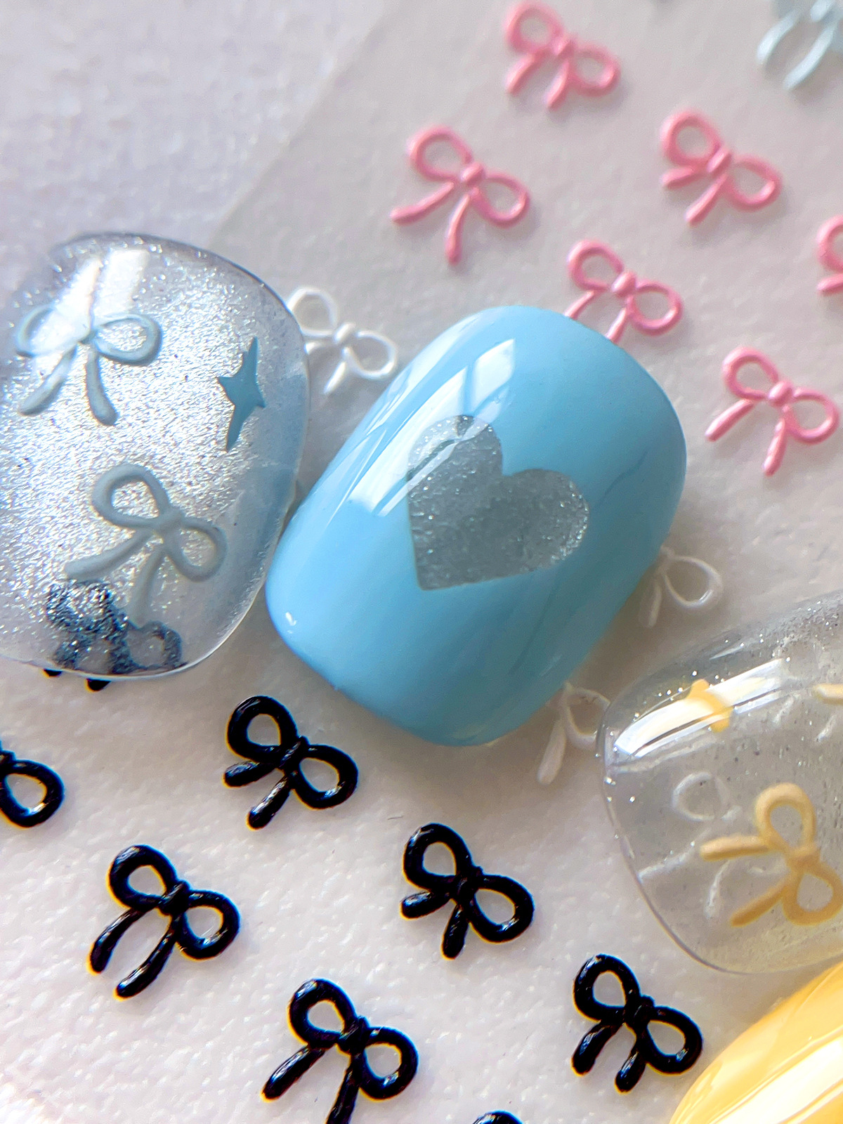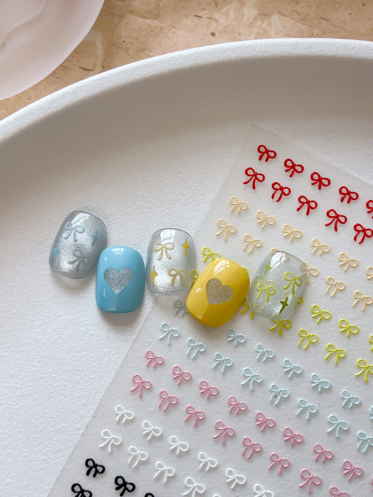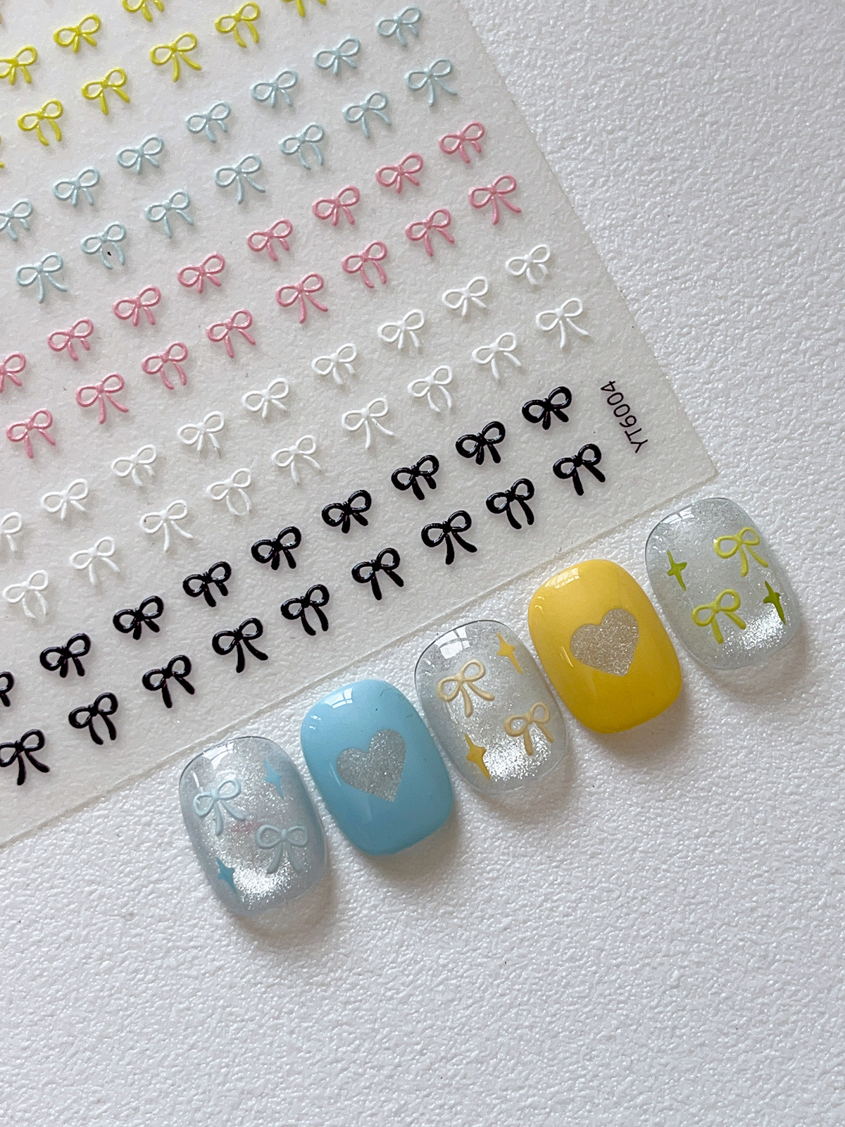 나비 매듭 네일 아트 스티커 핫 스탬핑 실버 레드 흑백 간단한 나비 매듭 스티커 접착제 뒷면 양각 네일 스티커스토어 가기