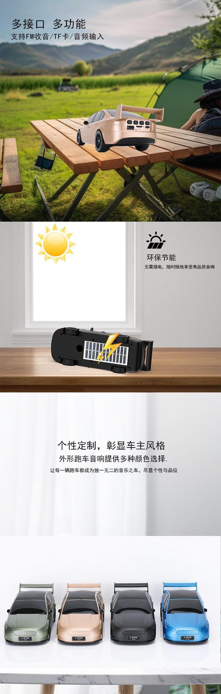 태양 전지 패널 데스크탑 장식품이있는 아프리카 핫 세일 스포츠카 모델 블루투스 스피커 고급 선물 서브 우퍼 오디오