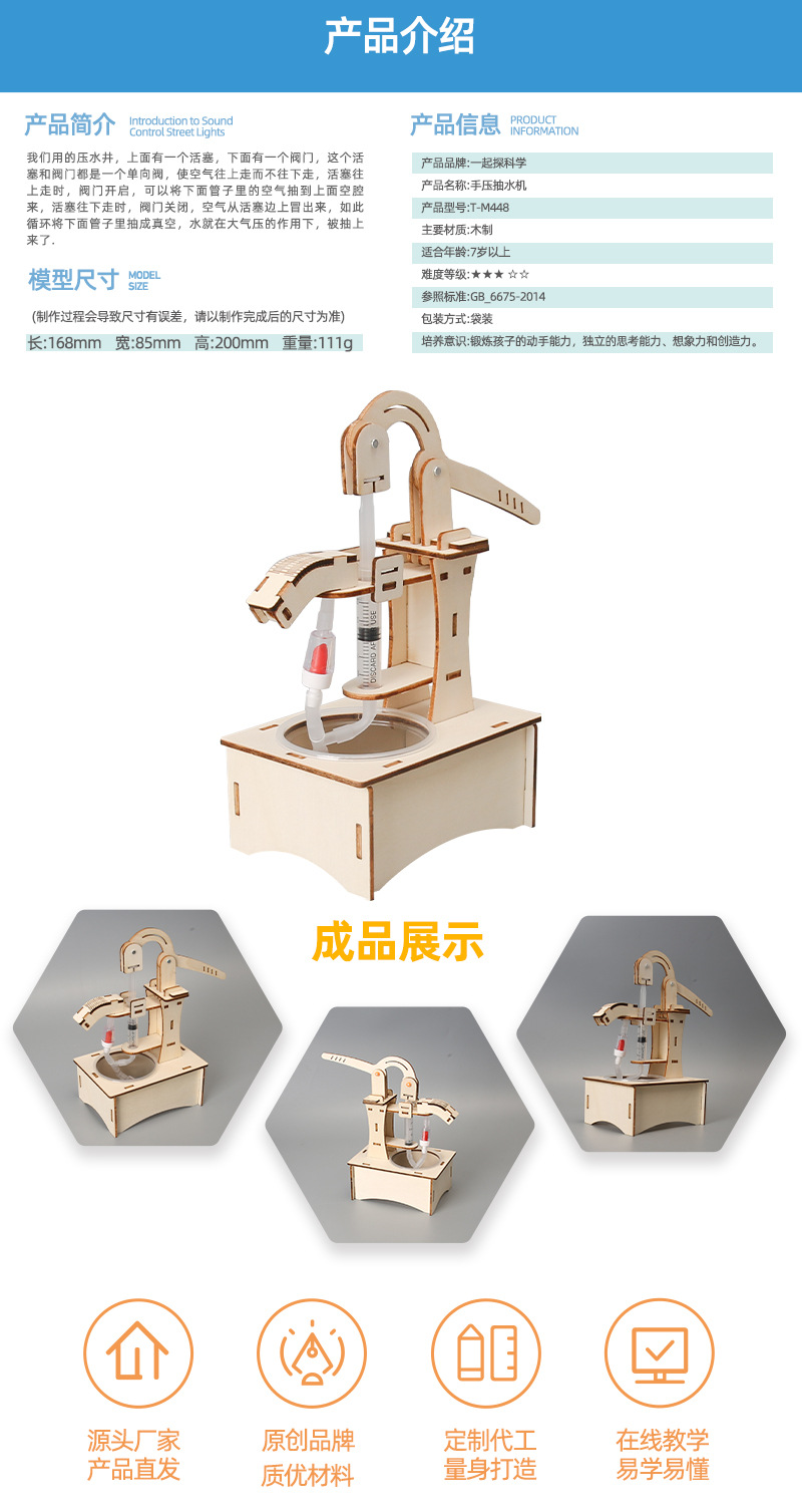 과학 실험 DIY 손으로 누르는 워터 펌프 수동 워터 우물 기술 소규모 생산 어린이 수제 재료 패키지 세트