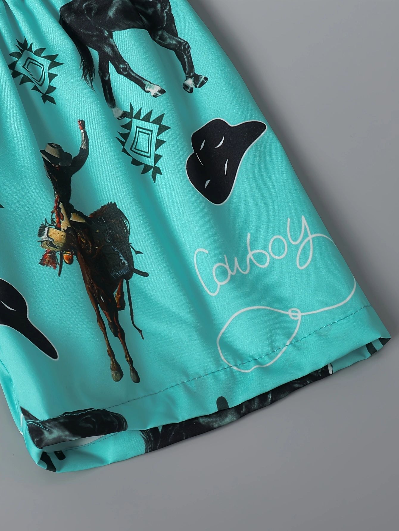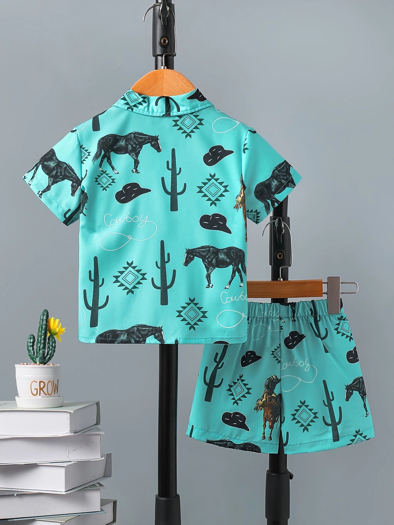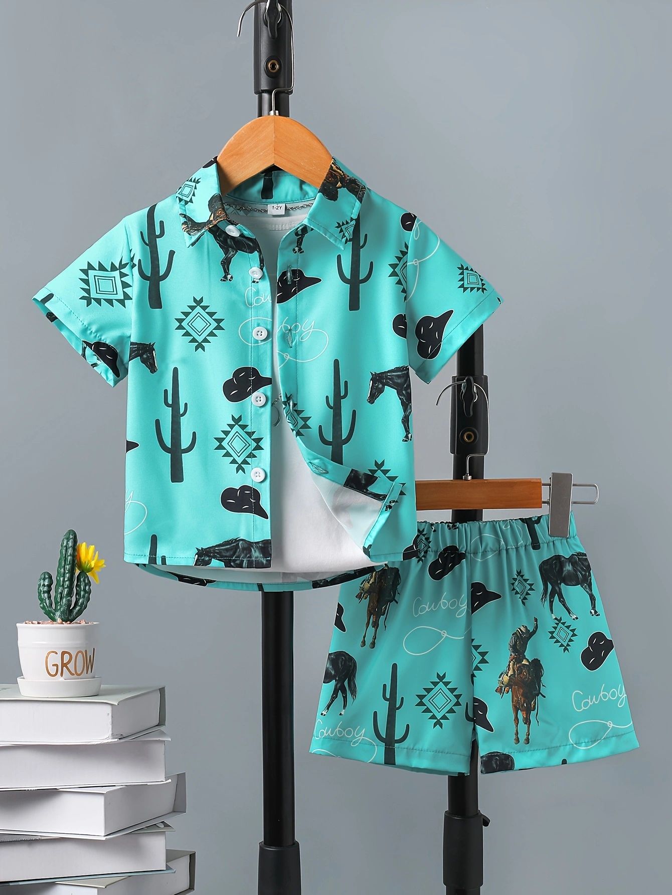 크로스보더 INS 아동용 소년 여름 스타일 라펠 반팔 셔츠 싱글 브레스트 탑 프린트 반바지 정장 트렌디스토어 가기