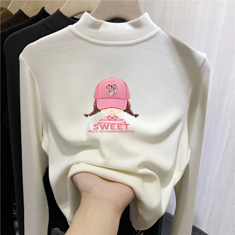 여아복 하프 터틀넥 독일 벨벳 긴팔 티셔츠 베이스 레이어 가을 겨울 중대형 아동 패션 따뜻한 이너 화이트 탑스토어 가기