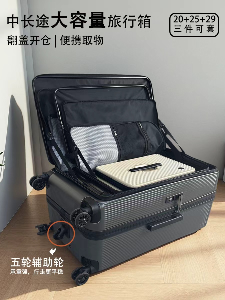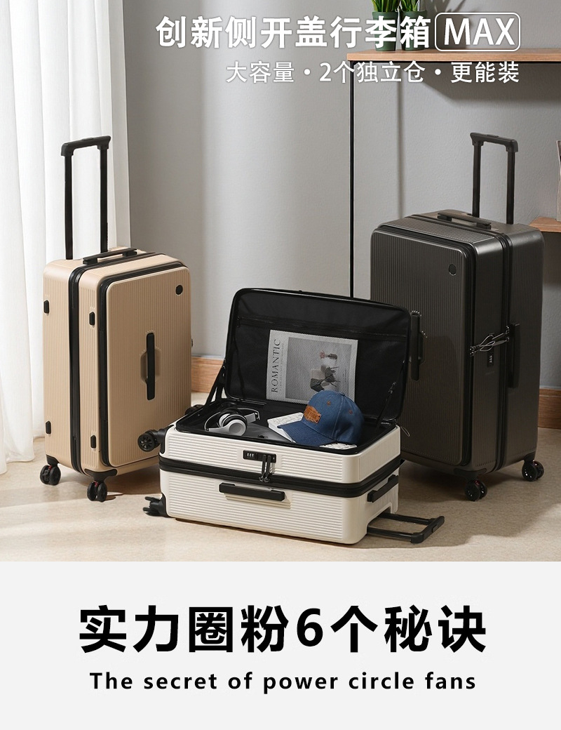 새로운 측면 개방형 멀티 핸들 트롤리 케이스, 멀티 파티션, 전면 개방형 뚜껑, 스프링 충격 흡수 휠, 대형 공간 상자스토어 가기