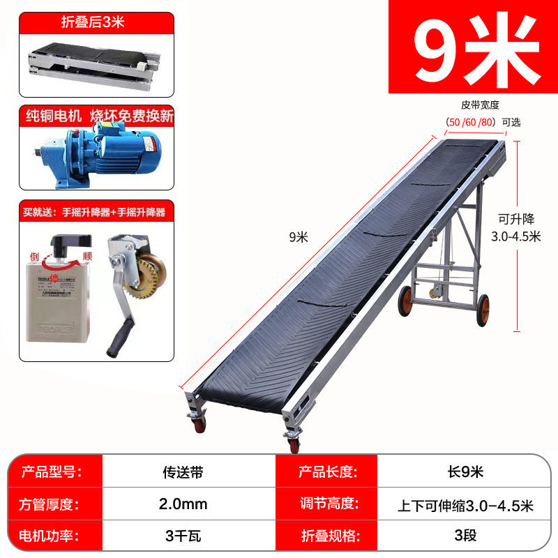 컨베이어 벨트 컨베이어 소형 다목적 두꺼운 컨베이어 벨트 로딩 및 언로딩 이동식 등반 접이식 벨트 컨베이어
