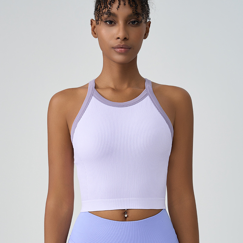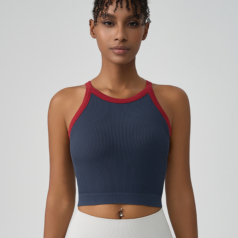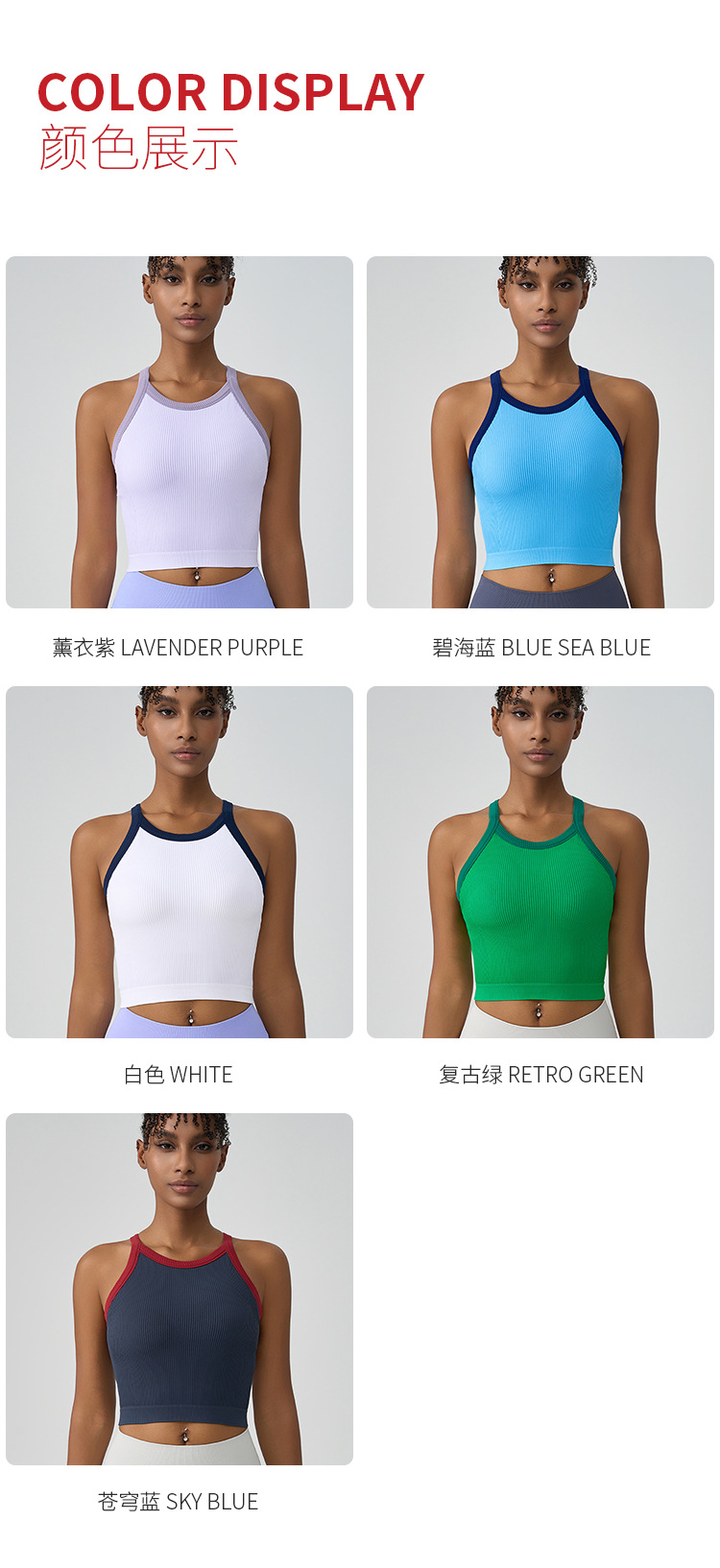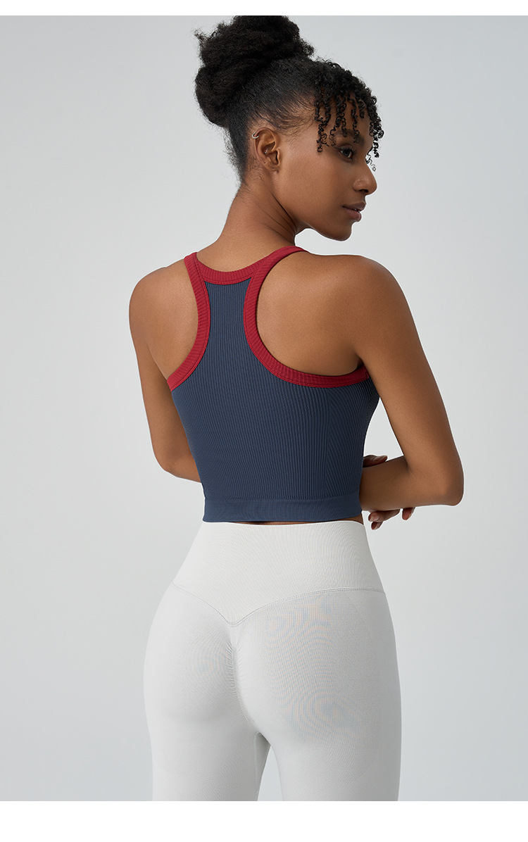 여성용 외부 착용을 위한 가슴 패드가 있는 워튼 대비 색상 스포츠 브라, 충격 방지 푸시업 전문 트레이닝 피트니스 요가 조끼 브라